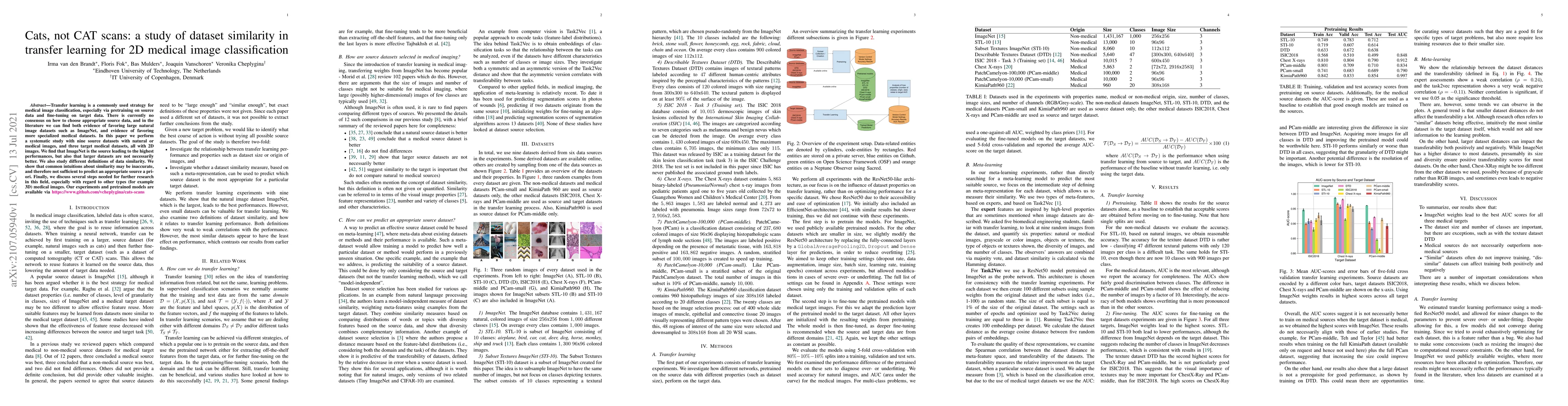Transfer learning is a commonly used strategy for medical image classification, especially via pretraining on source data and fine-tuning on target data. There is currently no consensus on how to choose appropriate source data, and in the literature we can find both evidence of favoring large natural image datasets such as ImageNet, and evidence of favoring more specialized medical datasets. In this paper we perform a systematic study with nine source datasets with natural or medical images, and three target medical datasets, all with 2D images. We find that ImageNet is the source leading to the highest performances, but also that larger datasets are not necessarily better. We also study different definitions of data similarity. We show that common intuitions about similarity may be inaccurate, and therefore not sufficient to predict an appropriate source a priori. Finally, we discuss several steps needed for further research in this field, especially with regard to other types (for example 3D) medical images. Our experiments and pretrained models are available via \url{https://www.github.com/vcheplygina/cats-scans}