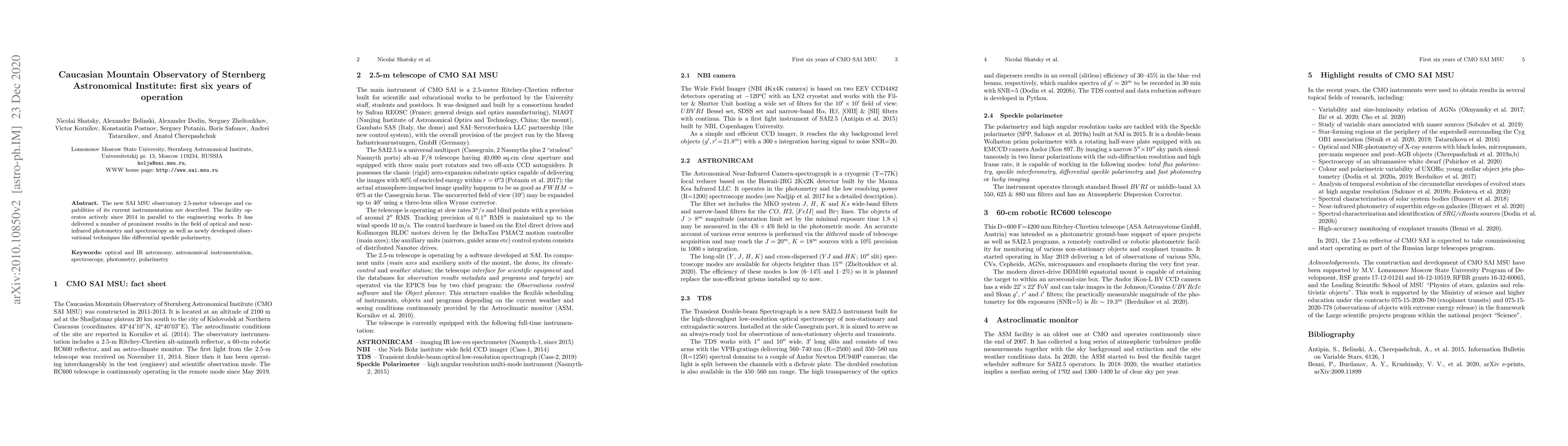 A. M. Tatarnikov, S. G. Zheltoukhov, A. A. Belyakova et al.