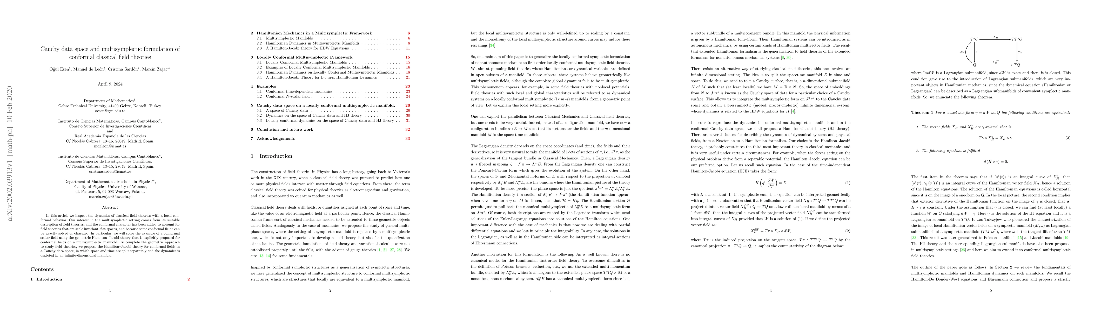 This paper explores the dynamics of classical field theories with local conformal behavior using a multisymplectic framework. It specifically solves the example of a conformal scalar field using geometric Hamilton-Jacobi theory on a multisymplectic manifold and proposes a Hamilton-Jacobi theory for conformal fields within a Cauchy data space.