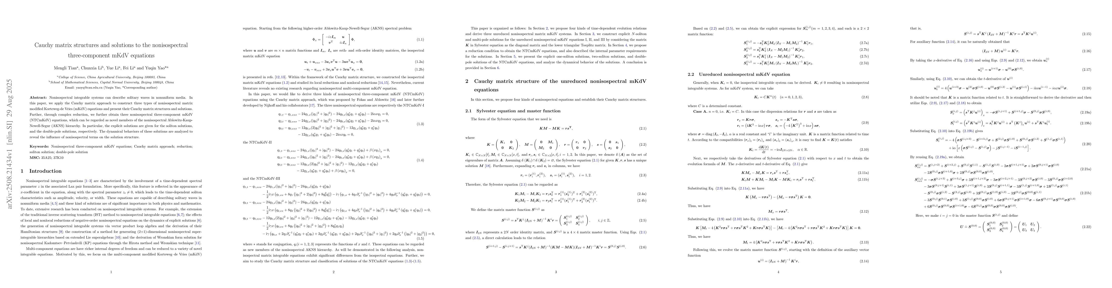 Nonisospectral integrable systems can describe solitary waves in nonuniform media. In this paper, we apply the Cauchy matrix approach to construct three types of nonisospectral matrix modified Korteweg-de Vries (mKdV) eqautions and present their Cauchy matrix structures and solutions. Further, through complex reduction, we further obtain three nonisospectral three-component mKdV (NTCmKdV) equations, which can be regarded as novel members of the nonisospectral Ablowitz-Kaup-Newell-Segur (AKNS) hierarchy. In particular, the explicit solutions are given for the soliton solutions, and the double-pole solutions, respectively. The dynamical behaviors of these solutions are analyzed to reveal the influence of nonisospectral terms on the solution structure.