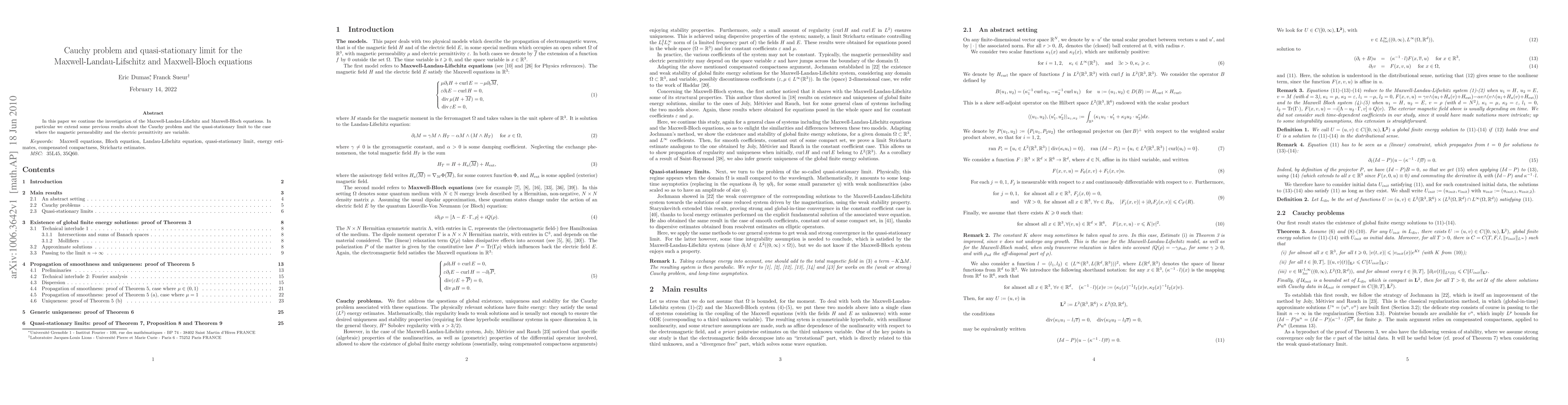 This paper investigates the Cauchy problem and quasi-stationary limit for the Maxwell-Landau-Lifschitz and Maxwell-Bloch equations, extending previous results to scenarios where magnetic permeability and electric permittivity are variable.