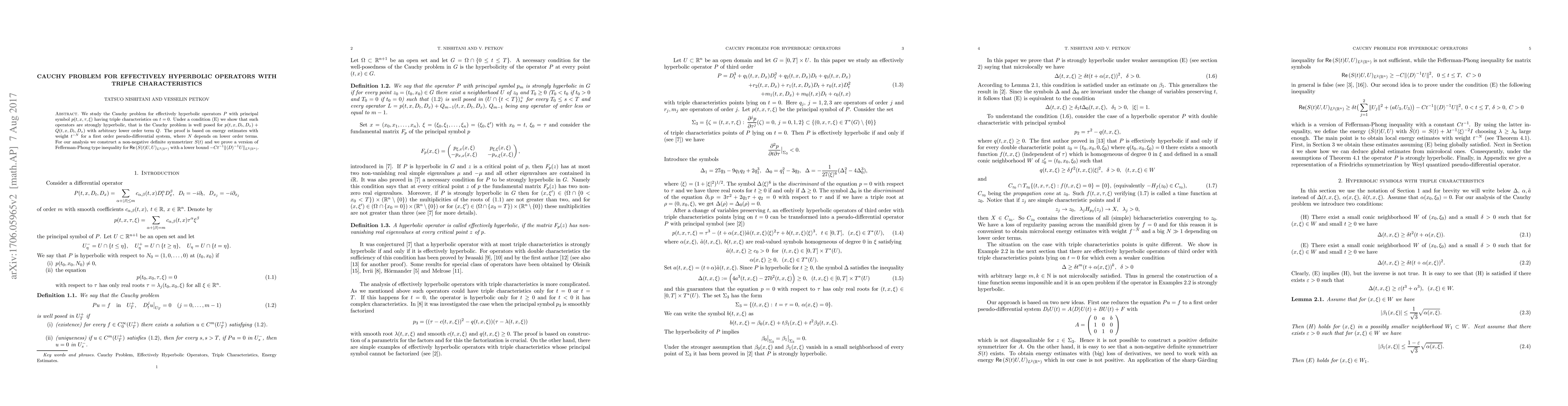 This paper investigates the Cauchy problem for effectively hyperbolic operators with triple characteristics, proving well-posedness under condition (E) using energy estimates and a symmetrizer. A Fefferman-Phong type inequality is established to support the analysis.