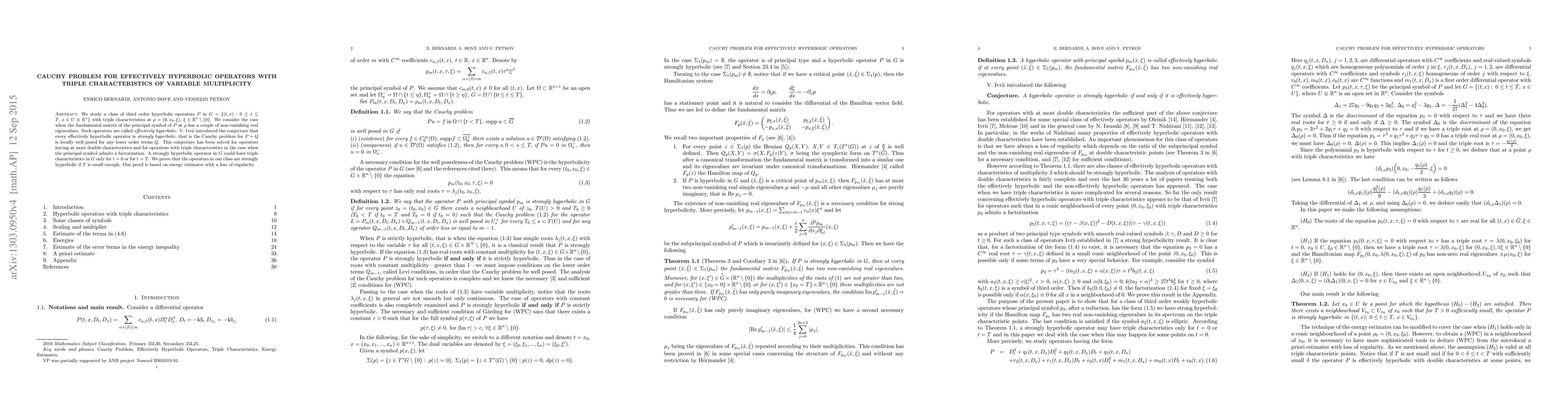 This paper investigates third-order hyperbolic operators with triple characteristics of variable multiplicity, focusing on effectively hyperbolic operators. The authors prove that these operators are strongly hyperbolic under certain conditions, supporting a conjecture by V. Ivrii, and utilize energy estimates with a loss of regularity in their proof.