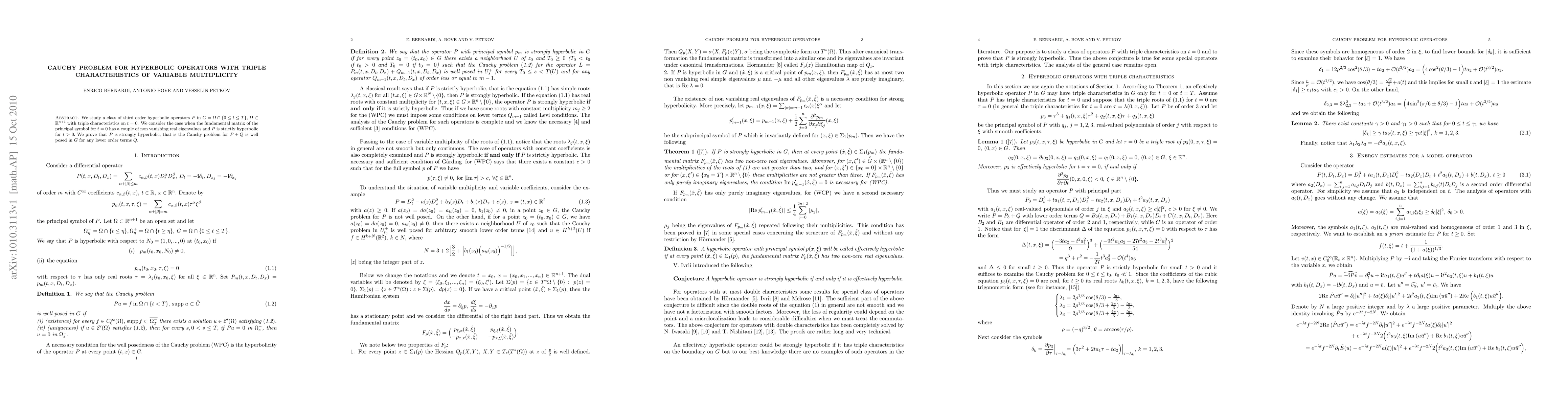 Summary: This paper investigates third-order hyperbolic operators with triple characteristics on $t = 0$ and proves strong hyperbolicity, ensuring the well-posedness of the Cauchy problem for these operators in a specified domain.