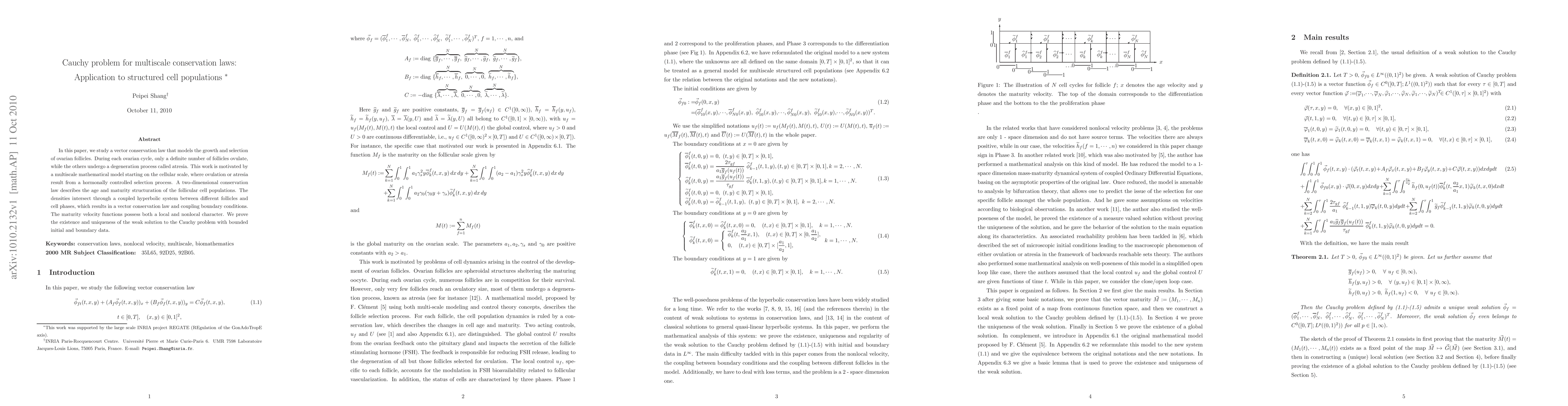 This paper investigates a vector conservation law modeling ovarian follicle growth and selection, focusing on the interplay between ovulation and atresia. It establishes a multiscale mathematical model and proves the existence and uniqueness of a weak solution to the Cauchy problem for the described conservation law.