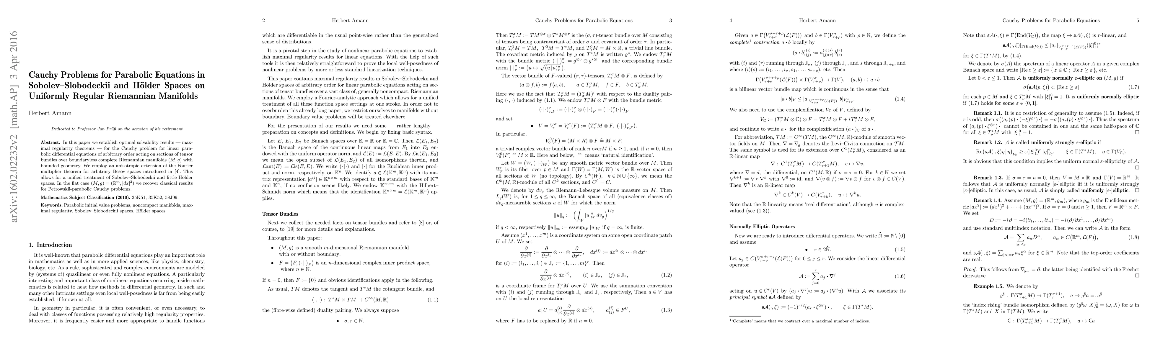 In this paper we establish optimal solvability results, that is, maximal regularity theorems, for the Cauchy problem for linear parabolic differential equations of arbitrary order acting on sections of tensor bundles over boundaryless complete Riemannian manifolds with bounded geometry. We employ an anisotropic extension of the Fourier multiplier theorem for arbitrary Besov spaces introduced in earlier by the author. This allows for a unified treatment of Sobolev-Slobodeckii and little H\"older spaces. In the flat case we recover classical results for Petrowskii-parabolic Cauchy problems.