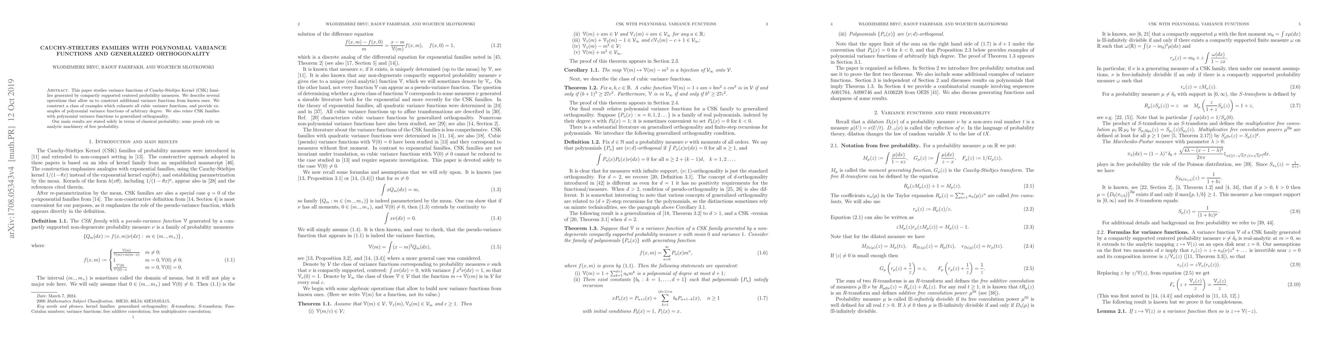 This paper explores variance functions of Cauchy-Stieltjes Kernel families derived from compactly supported probability measures, constructing polynomial variance functions of arbitrary degree and linking them to generalized orthogonality through classical probability and free probability techniques.