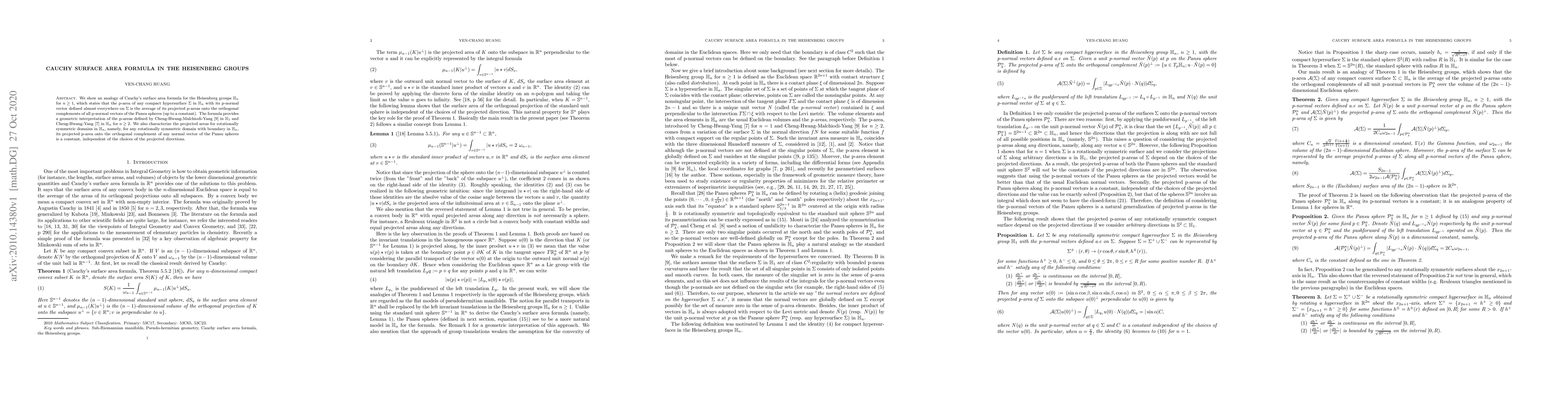 Researchers derive a formula for calculating surface area in the Heisenberg groups, analogous to Cauchy's formula, providing a geometric interpretation of previous work on areas defined by Cheng-Hwang-Malchiodi-Yang in lower-dimensional Heisenberg spaces.