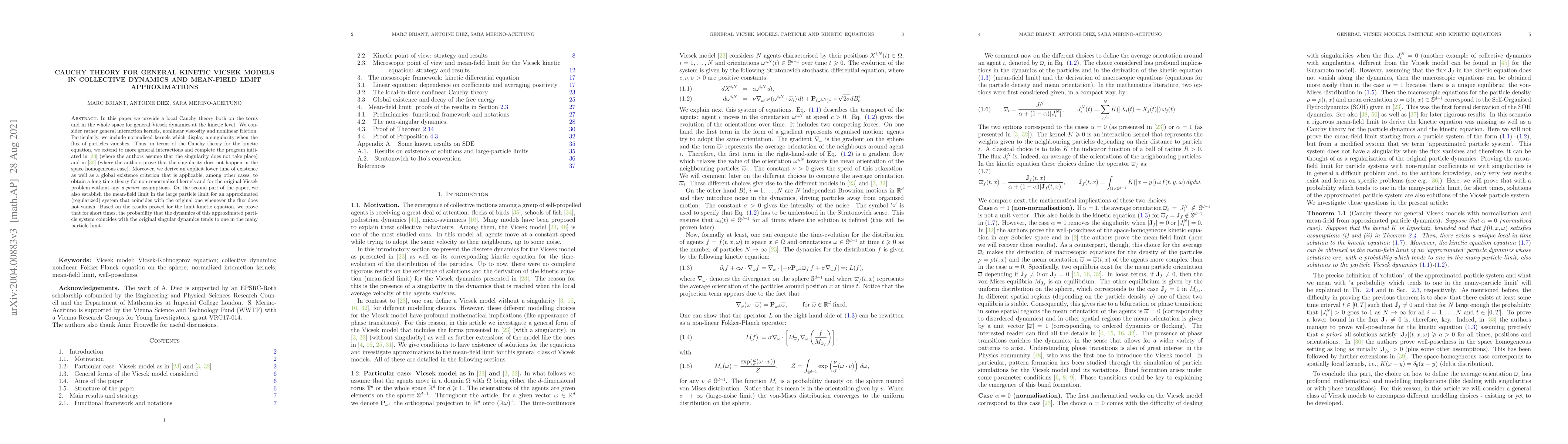 In this paper we provide a local Cauchy theory both on the torus and in the whole space for general Vicsek dynamics at the kinetic level. We consider rather general interaction kernels, nonlinear viscosity and nonlinear friction. Particularly, we include normalised kernels which display a singularity when the flux of particles vanishes. Thus, in terms of the Cauchy theory for the kinetic equation, we extend to more general interactions and complete the program initiated in Gamba et. al. (2016) (where the authors assume that the singularity does not take place) and in Figalli et. al. (2017) (where the authors prove that the singularity does not happen in the space homogeneous case). Moreover, we derive an explicit lower time of existence as well as a global existence criterion that is applicable, among other cases, to obtain a long time theory for non-renormalised kernels and for the original Vicsek problem without any a priori assumptions. On the second part of the paper, we also establish the mean-field limit in the large particle limit for an approximated (regularized) system that coincides with the original one whenever the flux does not vanish. Based on the results proved for the limit kinetic equation, we prove that for short times, the probability that the dynamics of this approximated particle system coincides with the original singular dynamics tends to one in the many particle limit.