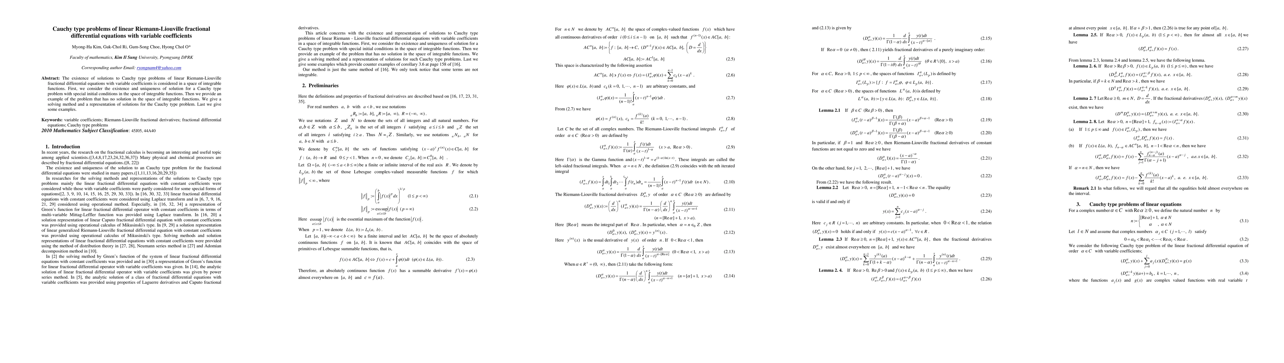 This paper explores the existence and uniqueness of solutions for Cauchy type problems of linear Riemann-Liouville fractional differential equations with variable coefficients in the space of integrable functions. It also provides a method for solving these problems and presents examples illustrating both solvable and unsolvable cases.