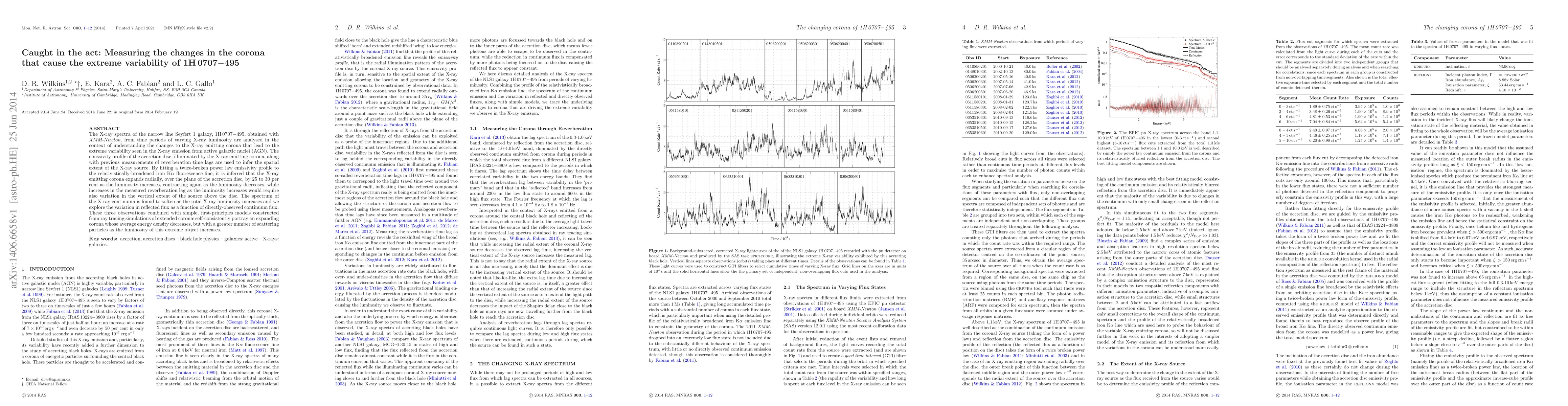 The X-ray spectra of the narrow line Seyfert 1 galaxy, 1H 0707-495, obtained with XMM-Newton, from time periods of varying X-ray luminosity are analysed in the context of understanding the changes to the X-ray emitting corona that lead to the extreme variability seen in the X-ray emission from active galactic nuclei (AGN). The emissivity profile of the accretion disc, illuminated by the X-ray emitting corona, along with previous measurements of reverberation time lags are used to infer the spatial extent of the X-ray source. By fitting a twice-broken power law emissivity profile to the relativistically-broadened iron K fluorescence line, it is inferred that the X-ray emitting corona expands radially, over the plane of the accretion disc, by 25 to 30 per cent as the luminosity increases, contracting again as the luminosity decreases, while increases in the measured reverberation lag as the luminosity increases would require also variation in the vertical extent of the source above the disc. The spectrum of the X-ray continuum is found to soften as the total X-ray luminosity increases and we explore the variation in reflected flux as a function of directly-observed continuum flux. These three observations combined with simple, first-principles models constructed from ray tracing simulations of extended coron self-consistently portray an expanding corona whose average energy density decreases, but with a greater number of scattering particles as the luminosity of this extreme object increases.