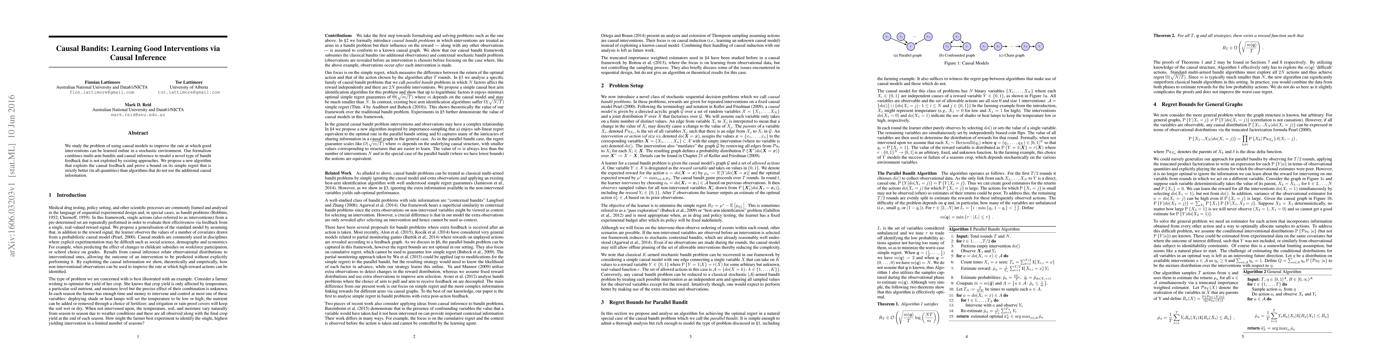 This paper introduces a novel causal bandit algorithm that leverages causal inference to enhance the discovery of effective interventions in stochastic environments. The proposed method outperforms existing algorithms by utilizing causal feedback, achieving a better bound on simple regret.