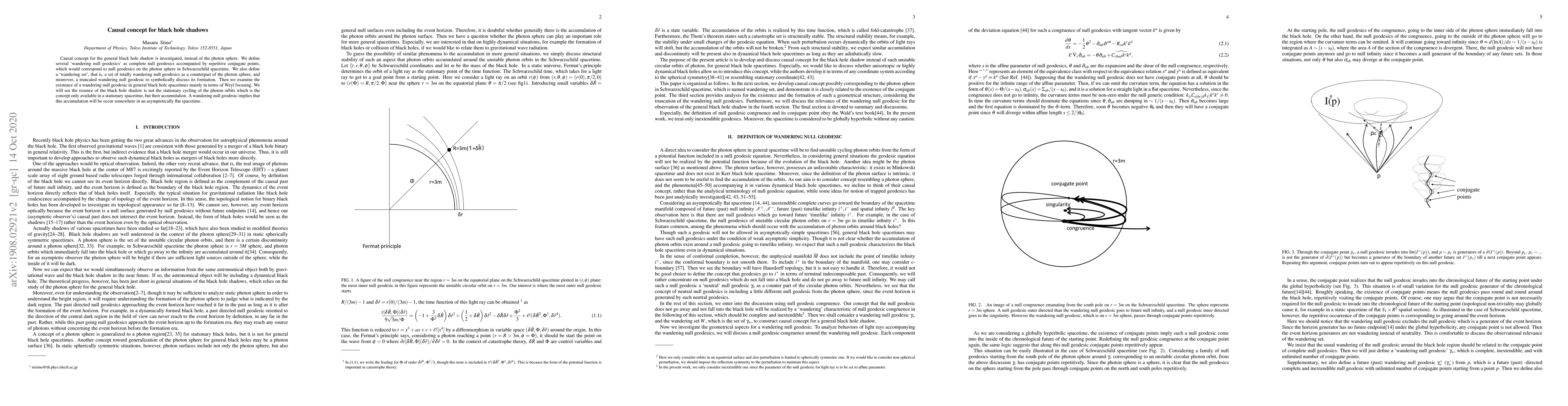 Causal concept for the general black hole shadow is investigated, instead of the photon sphere. We define several `wandering null geodesics' as complete null geodesics accompanied by repetitive conjugate points, which would correspond to null geodesics on the photon sphere in Schwarzschild spacetime. We also define a `wandering set', that is, a set of totally wandering null geodesics as a counterpart of the photon sphere, and moreover, a truncated wandering null geodesic to symbolically discuss its formation. Then we examine the existence of a wandering null geodesic in general black hole spacetimes mainly in terms of Weyl focusing. We will see the essence of the black hole shadow is not the stationary cycling of the photon orbits which is the concept only available in a stationary spacetime, but their accumulation. A wandering null geodesic implies that this accumulation will be occur somewhere in an asymptotically flat spacetime.