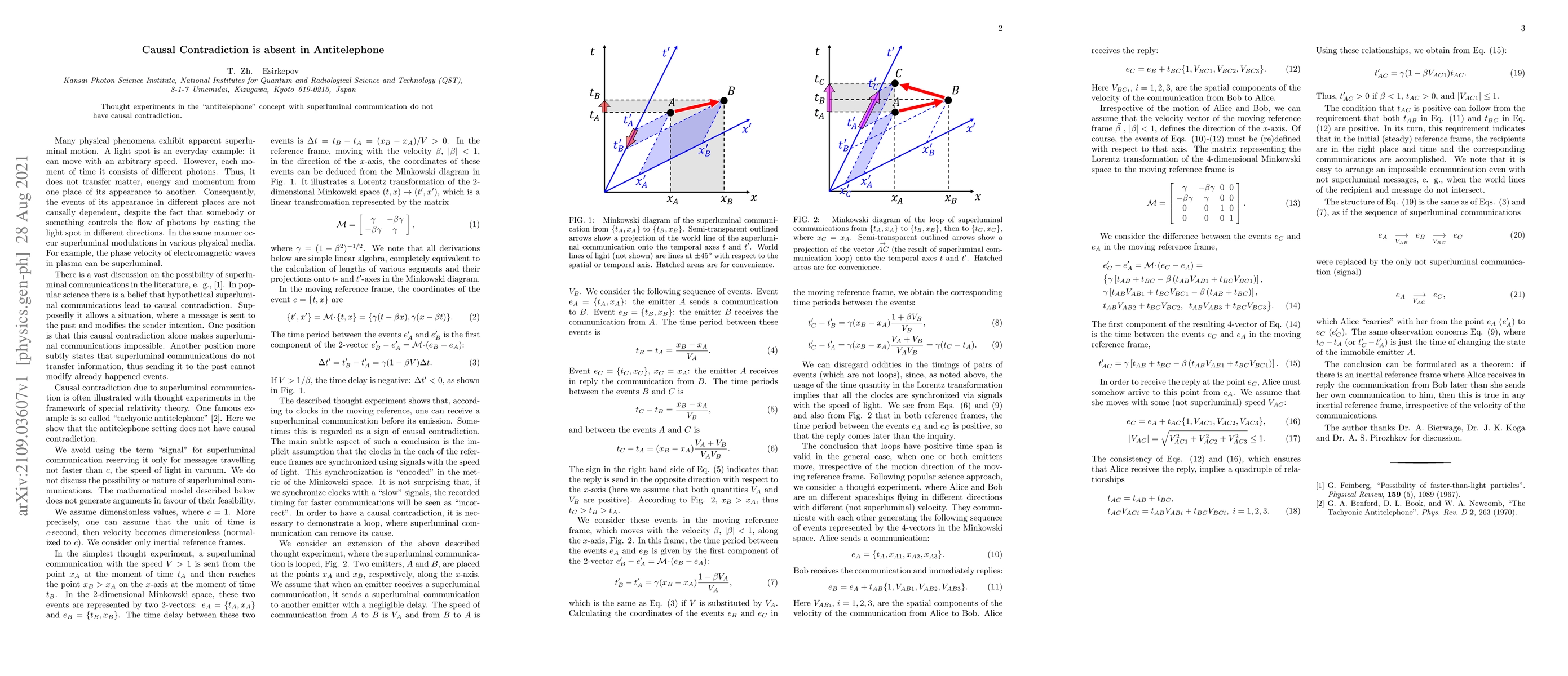 Thought experiments in the "antitelephone" concept with superluminal communication do not have causal contradiction.