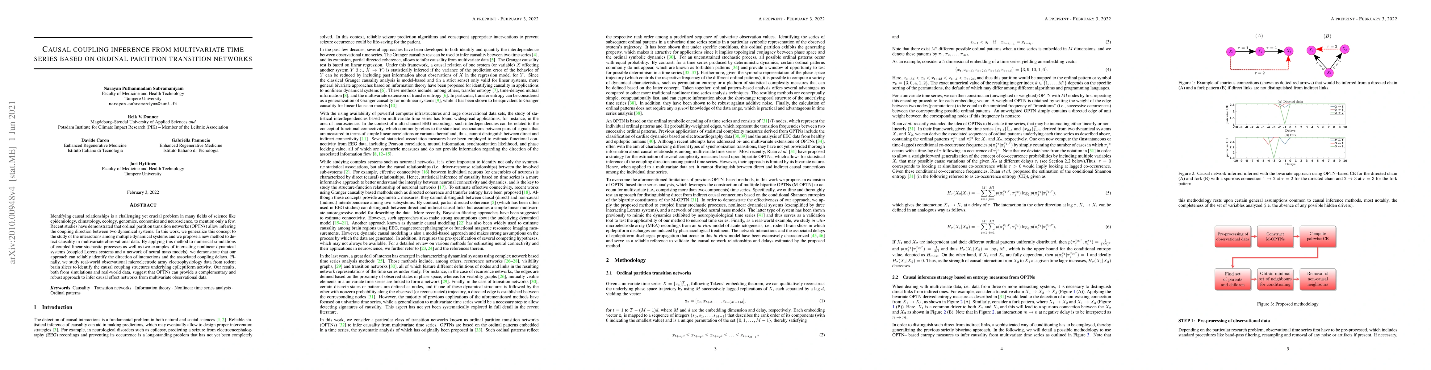 This paper proposes a new method using ordinal partition transition networks (OPTNs) to infer causal coupling in multivariate time series data, demonstrating its effectiveness on both simulated and real-world electrophysiology data to identify interaction directions and coupling delays. The results suggest OPTNs offer a robust approach for inferring causal networks from observational data.