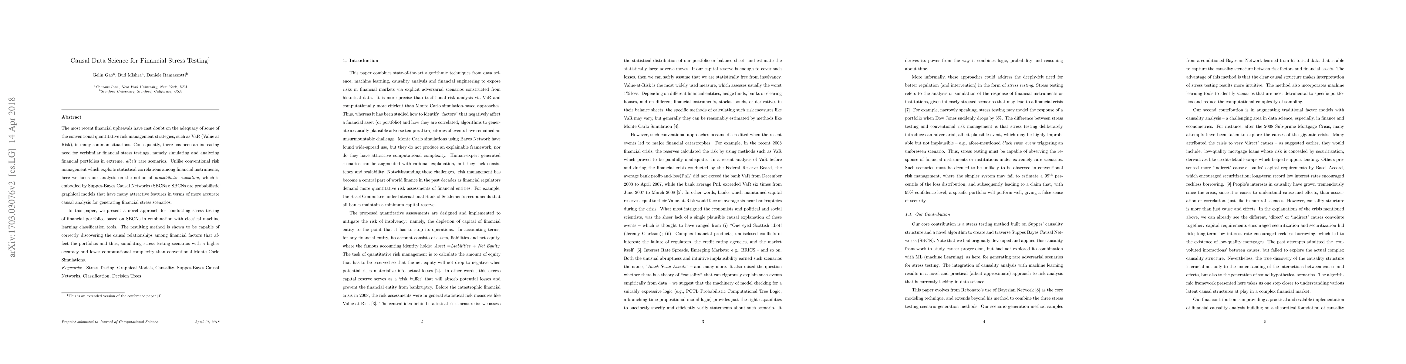 This research uses Suppes-Bayes causal networks to simulate financial stress testing scenarios.