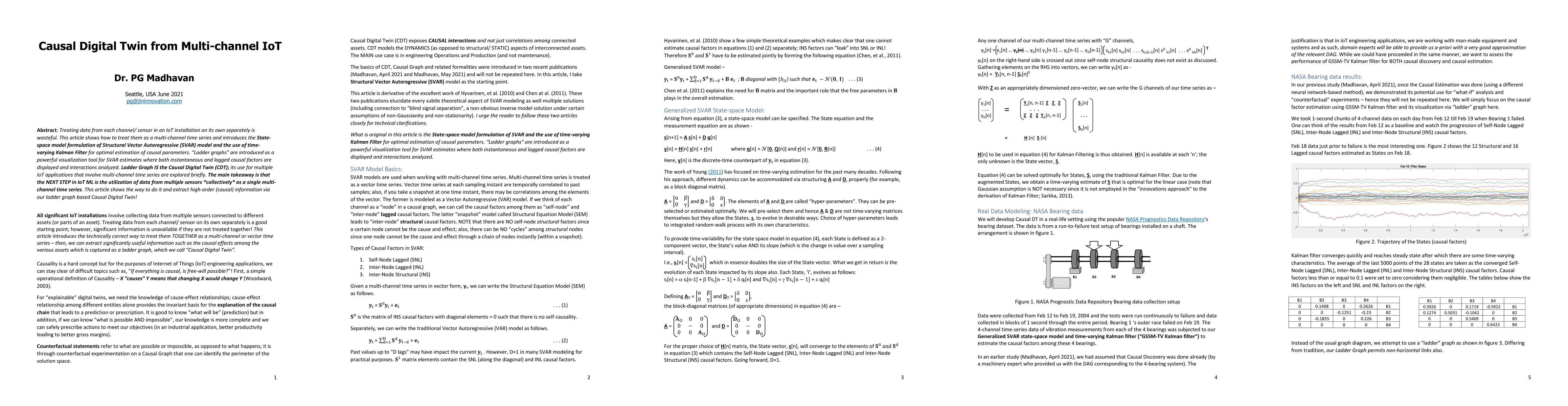Treating data from each sensor in an IoT installation on its own separately is wasteful. This article shows how to treat them as a multi-channel time series and introduces the State-space model formulation of Structural Vector Autoregressive (SVAR) model and the use of time-varying Kalman Filter for optimal estimation of causal parameters. Ladder graphs are introduced as a powerful visualization tool for SVAR estimates where both instantaneous and lagged causal factors are displayed and interactions analyzed. Ladder Graph IS the Causal Digital Twin (CDT); its use for multiple IoT applications that involve multi-channel time series are explored briefly. The main takeaway is that the NEXT STEP in IoT ML is the utilization of data from multiple sensors collectively as a single multi-channel time series. This article shows the way to do it and extract high-order (causal) information via our ladder graph based Causal Digital Twin.