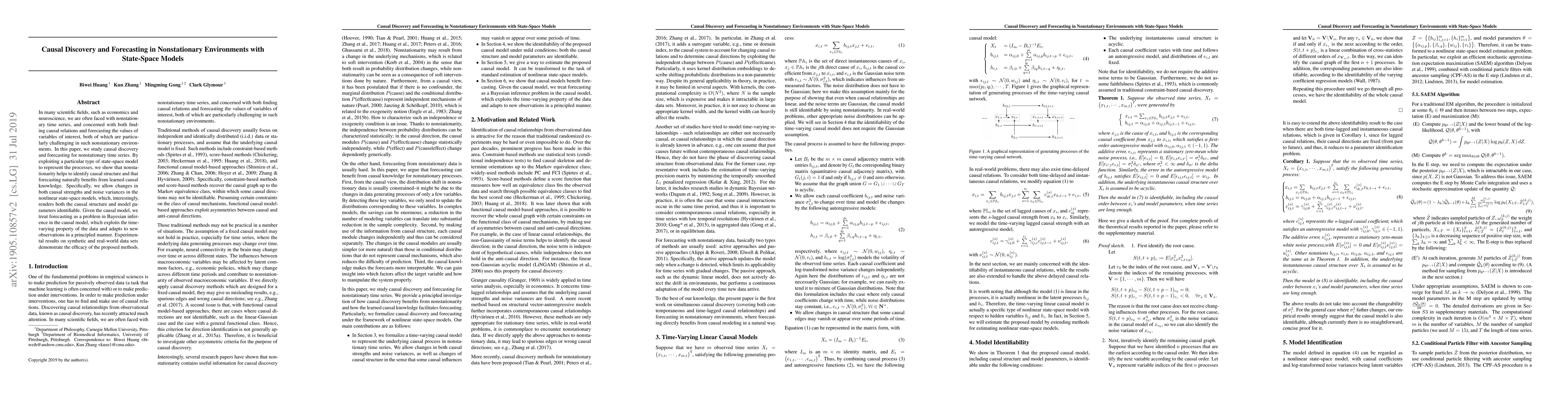 This paper proposes a state-space model for discovering causal relations and forecasting in nonstationary time series, showing that nonstationarity aids in identifying causal structures and enhances forecasting through learned causal knowledge. Experimental results validate the effectiveness of the approach on both synthetic and real-world datasets.