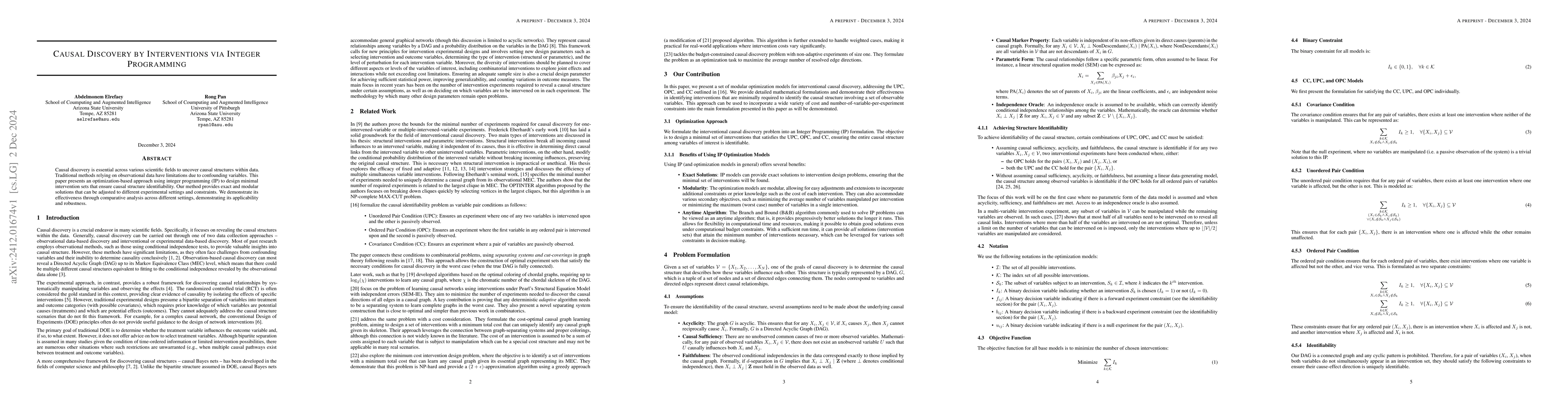 This paper introduces an integer programming method for discovering causal structures by designing minimal intervention sets, providing exact and adaptable solutions to various experimental conditions. The effectiveness and robustness of the approach are demonstrated through comparative analysis.