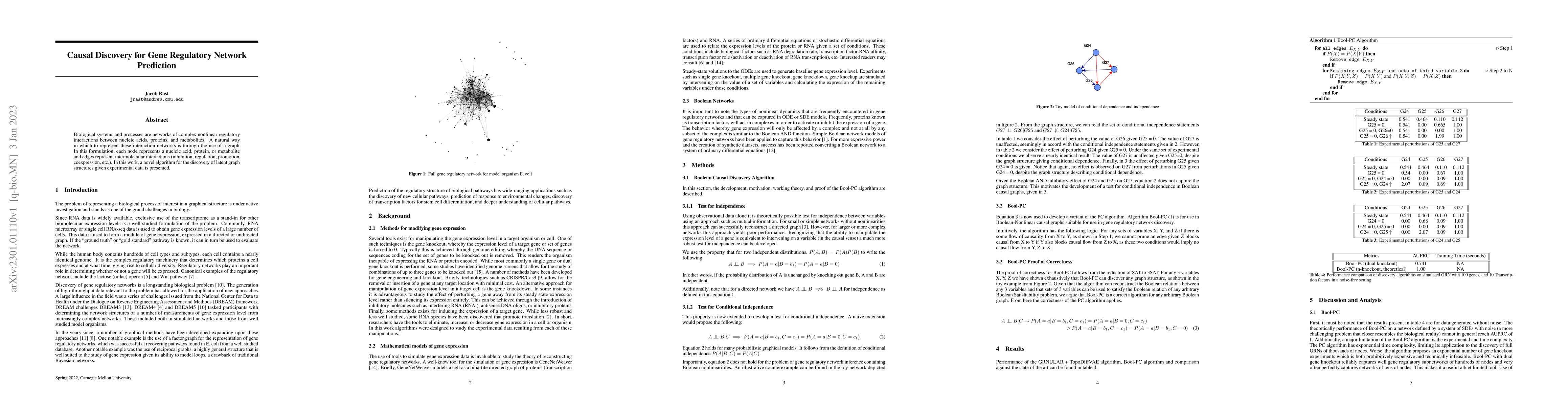 This paper introduces a new algorithm for uncovering the underlying graph structures of gene regulatory networks from experimental data, aiming to represent complex interactions between nucleic acids, proteins, and metabolites. The proposed method seeks to identify latent causal relationships within biological systems.