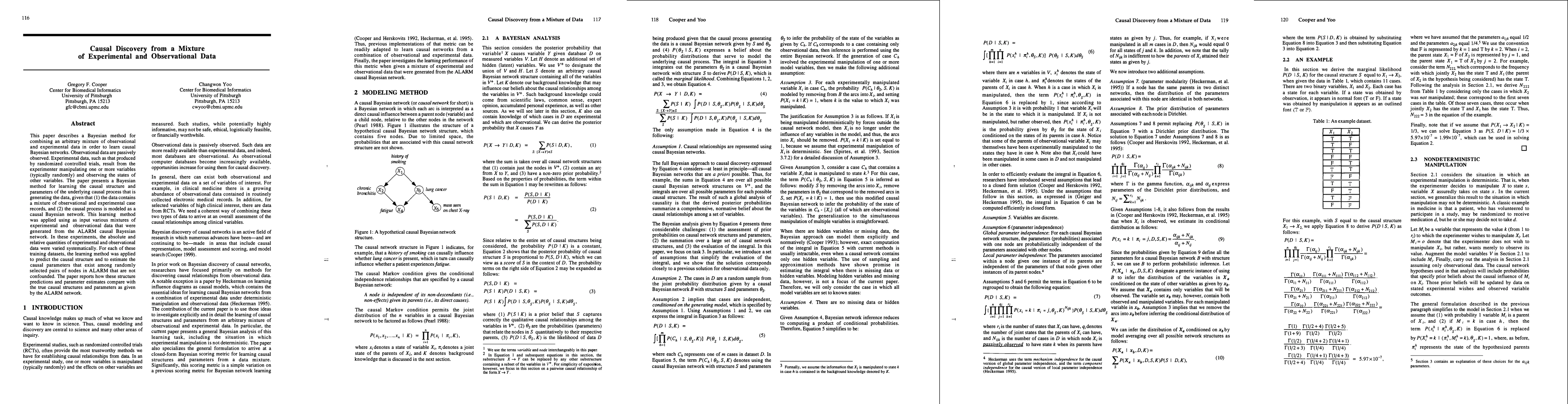 This paper proposes a Bayesian method to learn causal Bayesian networks from a mixture of observational and experimental data. The method was tested on data generated from the ALARM network, showing its ability to predict causal structures and estimate parameters accurately.