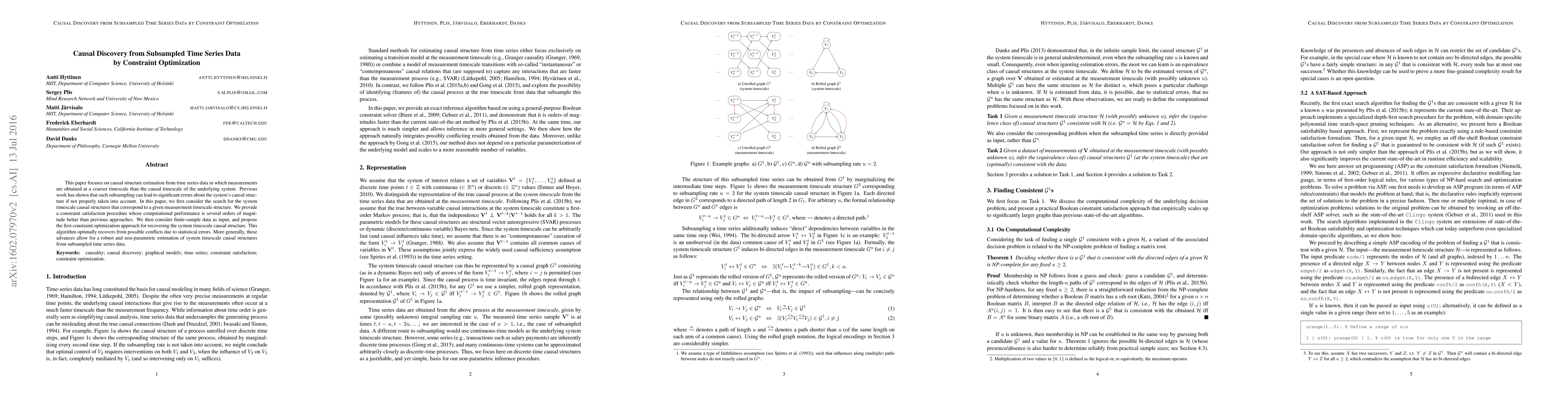 This paper introduces a constraint optimization method for estimating causal structures from subsampled time series data, significantly improving computational efficiency and robustness compared to previous approaches. The proposed algorithm effectively recovers causal relationships at the system's true timescale, even from finite-sample data, addressing statistical errors and enabling robust causal inference.