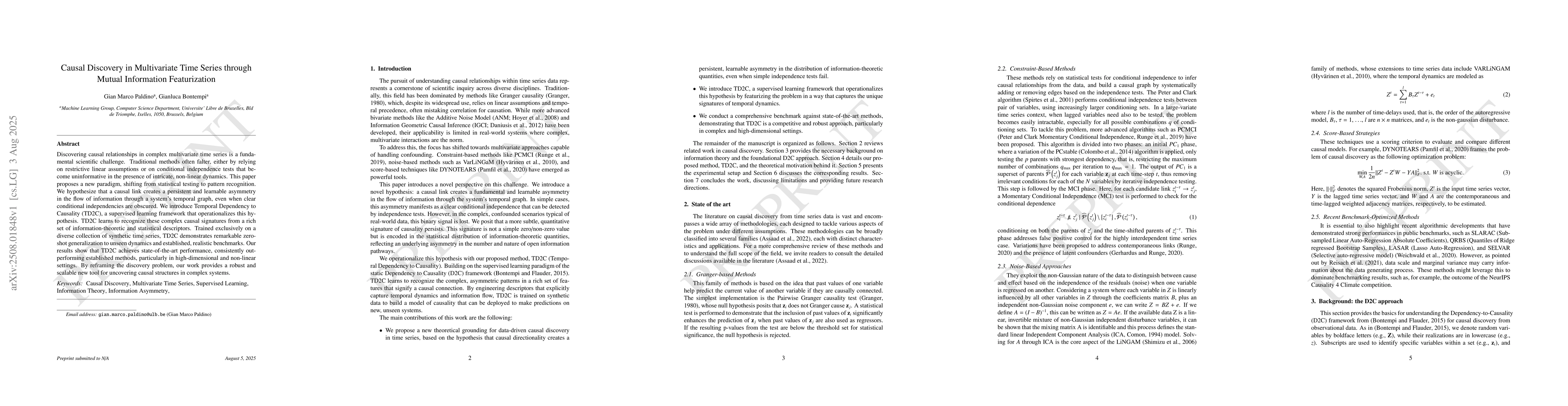 Discovering causal relationships in complex multivariate time series is a fundamental scientific challenge. Traditional methods often falter, either by relying on restrictive linear assumptions or on conditional independence tests that become uninformative in the presence of intricate, non-linear dynamics. This paper proposes a new paradigm, shifting from statistical testing to pattern recognition. We hypothesize that a causal link creates a persistent and learnable asymmetry in the flow of information through a system's temporal graph, even when clear conditional independencies are obscured. We introduce Temporal Dependency to Causality (TD2C), a supervised learning framework that operationalizes this hypothesis. TD2C learns to recognize these complex causal signatures from a rich set of information-theoretic and statistical descriptors. Trained exclusively on a diverse collection of synthetic time series, TD2C demonstrates remarkable zero-shot generalization to unseen dynamics and established, realistic benchmarks. Our results show that TD2C achieves state-of-the-art performance, consistently outperforming established methods, particularly in high-dimensional and non-linear settings. By reframing the discovery problem, our work provides a robust and scalable new tool for uncovering causal structures in complex systems.