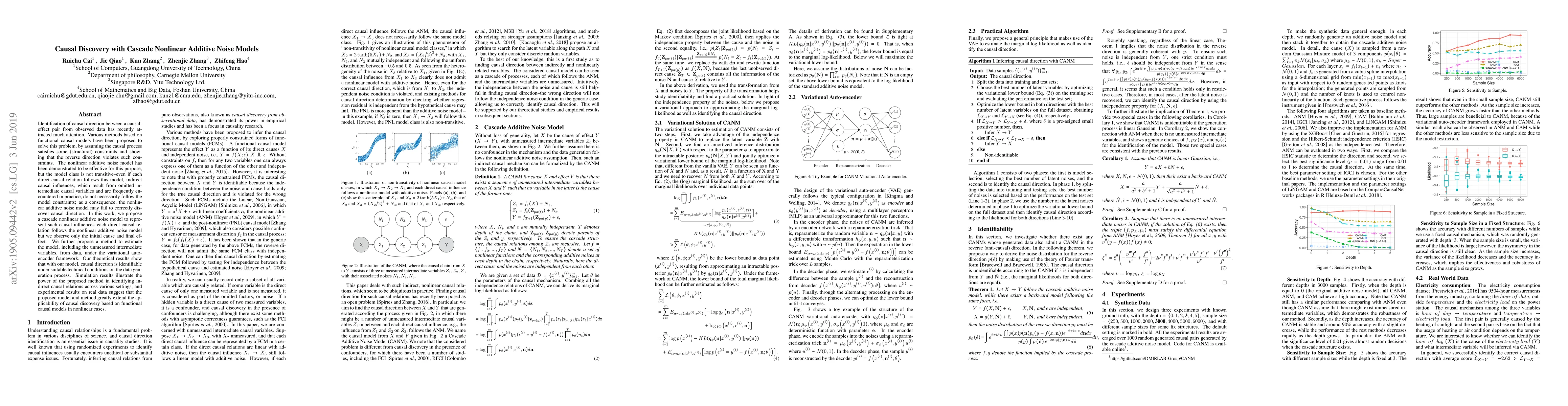 This paper proposes a cascade nonlinear additive noise model to identify causal direction in data, addressing the limitations of existing models that fail to capture indirect causal influences. The method estimates the model, including unmeasured intermediate variables, using a variational auto-encoder, and theoretical results demonstrate its identifiability under certain conditions.