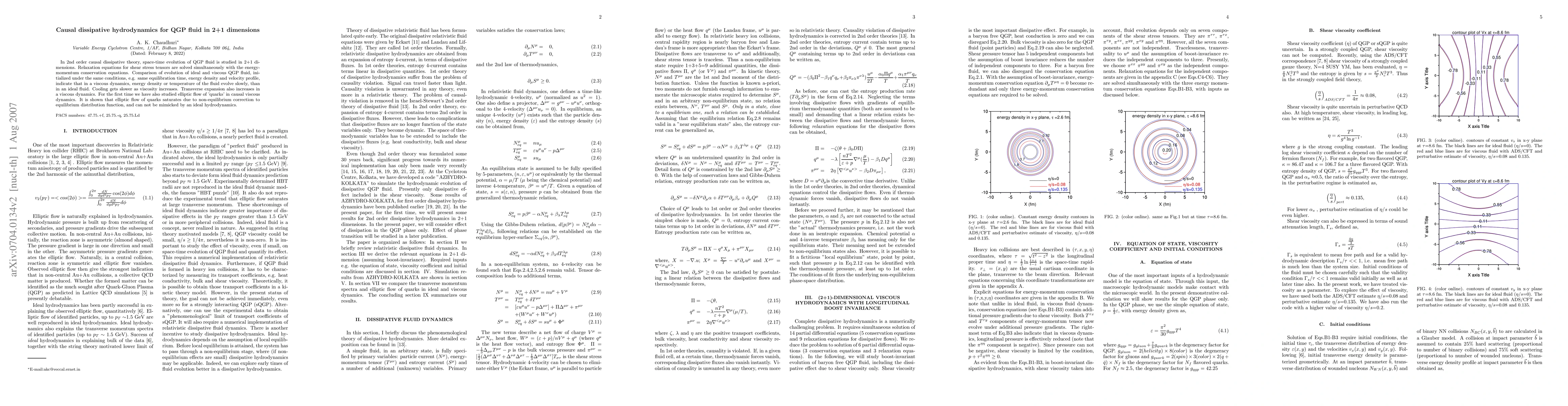 In 2nd order causal dissipative theory, space-time evolution of QGP fluid is studied in 2+1 dimensions. Relaxation equations for shear stress tensors are solved simultaneously with the energy-momentum conservation equations. Comparison of evolution of ideal and viscous QGP fluid, initialized under the same conditions, e.g. same equilibration time, energy density and velocity profile, indicate that in a viscous dynamics, energy density or temperature of the fluid evolve slowly, than in an ideal fluid. Cooling gets slower as viscosity increases. Transverse expansion also increases in a viscous dynamics. For the first time we have also studied elliptic flow of 'quarks' in causal viscous dynamics. It is shown that elliptic flow of quarks saturates due to non-equilibrium correction to equilibrium distribution function, and can not be mimicked by an ideal hydrodynamics.