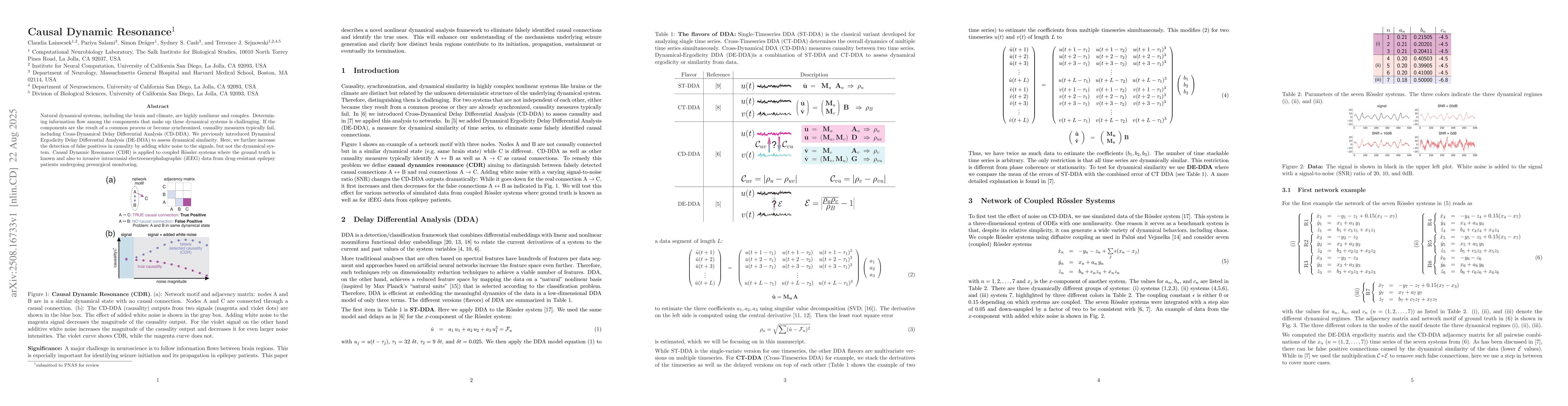 Natural dynamical systems, including the brain and climate, are highly nonlinear and complex. Determining information flow among the components that make up these dynamical systems is challenging. If the components are the result of a common process or become synchronized, causality measures typically fail, including Cross-Dynamical Delay Differential Analysis (CD-DDA). We previously introduced Dynamical Ergodicity Delay Differential Analysis (DE-DDA) to assess dynamical similarity. Here, we further increase the detection of false positives in causality by adding white noise to the signals, but not the dynamical system. Causal Dynamic Resonance (CDR) is applied to coupled R\"ossler systems where the ground truth is known and also to invasive intracranial electroencephalographic (iEEG) data from drug-resistant epilepsy patients undergoing presurgical monitoring.