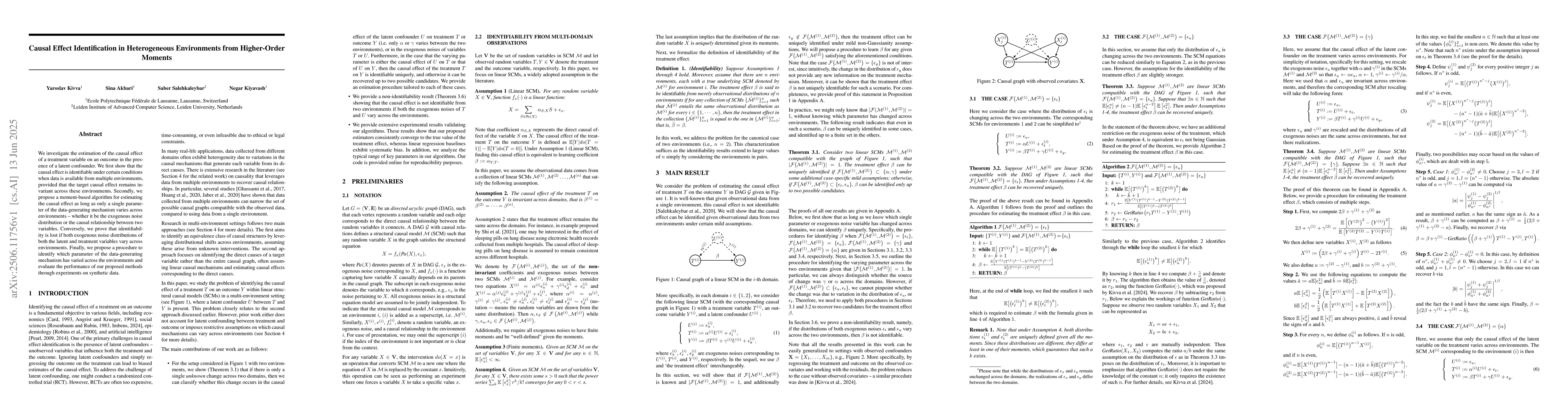 We investigate the estimation of the causal effect of a treatment variable on an outcome in the presence of a latent confounder. We first show that the causal effect is identifiable under certain conditions when data is available from multiple environments, provided that the target causal effect remains invariant across these environments. Secondly, we propose a moment-based algorithm for estimating the causal effect as long as only a single parameter of the data-generating mechanism varies across environments -- whether it be the exogenous noise distribution or the causal relationship between two variables. Conversely, we prove that identifiability is lost if both exogenous noise distributions of both the latent and treatment variables vary across environments. Finally, we propose a procedure to identify which parameter of the data-generating mechanism has varied across the environments and evaluate the performance of our proposed methods through experiments on synthetic data.