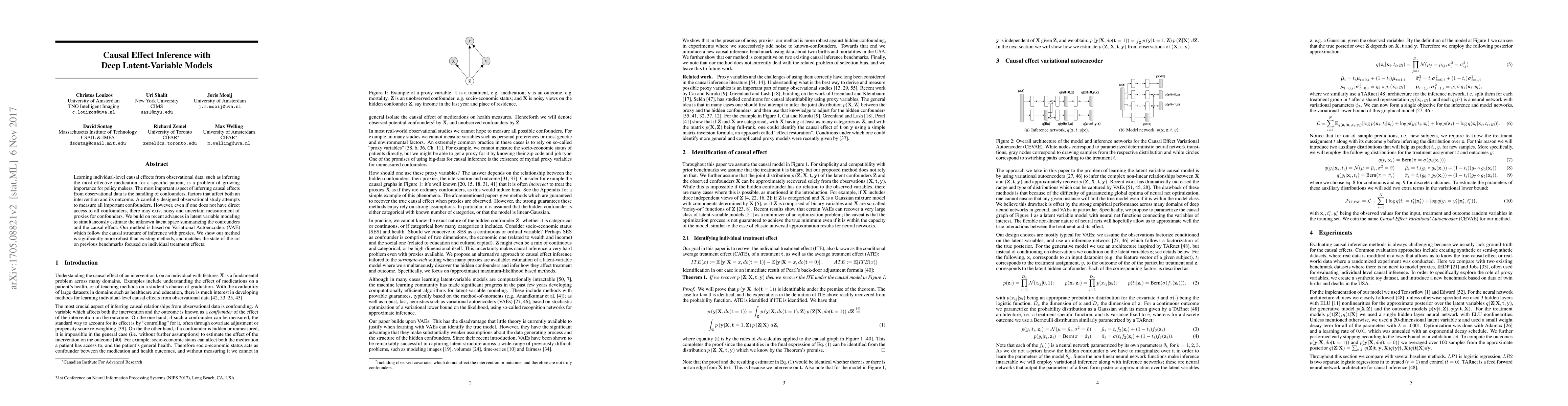 This paper proposes a method using Variational Autoencoders (VAE) to infer causal effects from observational data by estimating latent variables representing confounders, even when only noisy proxies are available. The method demonstrates superior robustness and performance compared to existing techniques in estimating individual treatment effects.