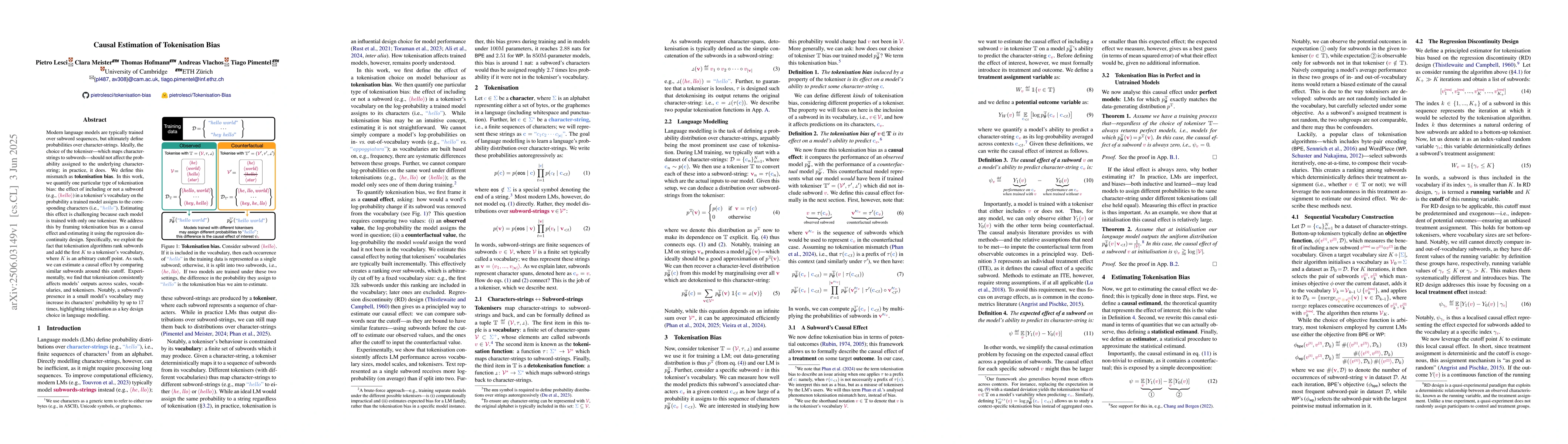 This work differs from existing research by quantifying tokenisation bias as a causal effect rather than an observational discrepancy, providing a more robust estimation method.