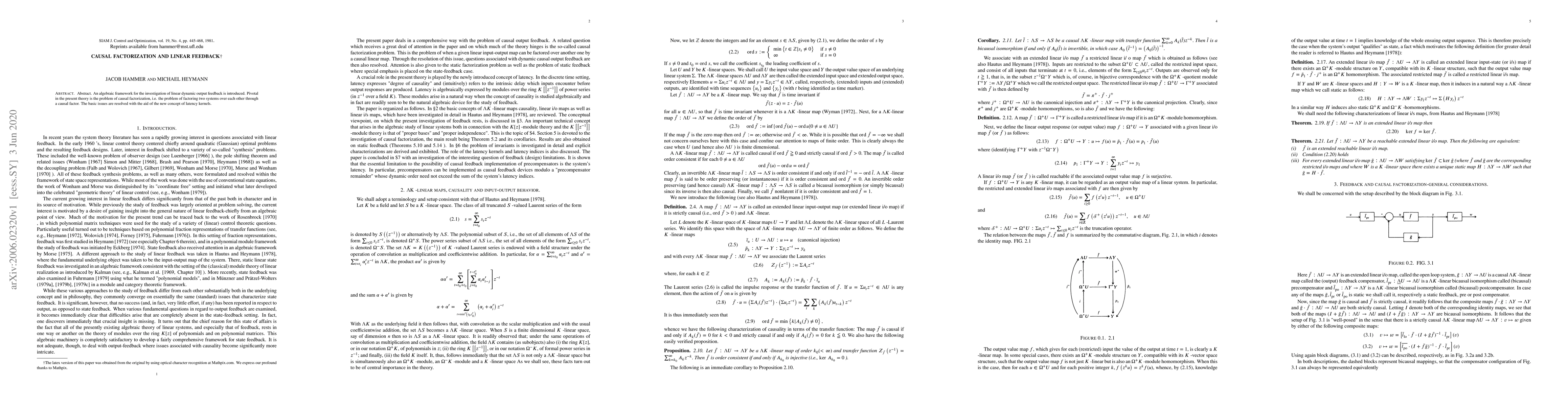 An algebraic framework for the investigation of linear dynamic output feedback is introduced. Pivotal in the present theory is the problem of causal factorization, i.e. the problem of factoring two systems over each other through a causal factor. The basic issues are resolved with the aid of the new concept of latency kernels.