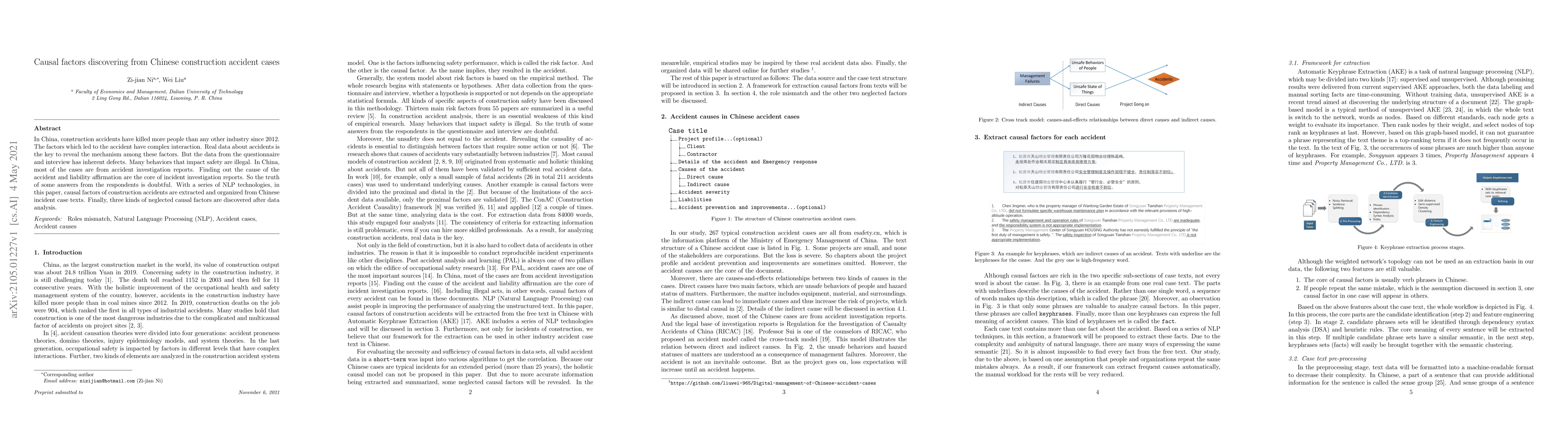 This paper utilizes NLP technologies to extract and analyze causal factors from Chinese construction accident reports, revealing complex interactions among accident-related factors. It identifies three previously neglected causal factors through this analysis, highlighting the importance of real data over questionnaire and interview data.