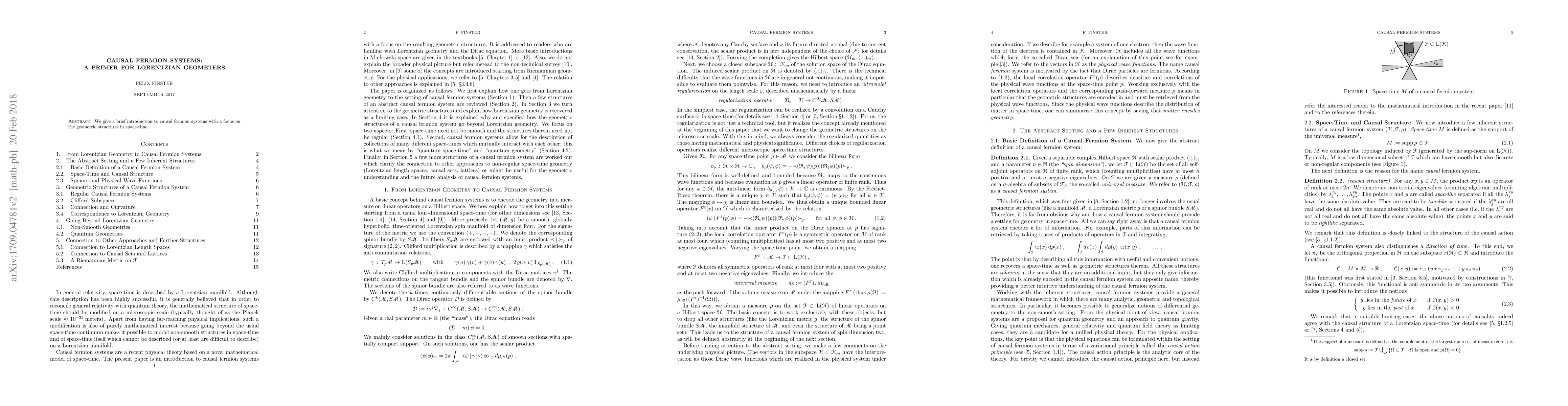 Summary: This paper introduces causal fermion systems, emphasizing their geometric structures in space-time, aimed at Lorentzian geometers. It provides foundational knowledge for understanding the underlying mathematical framework.