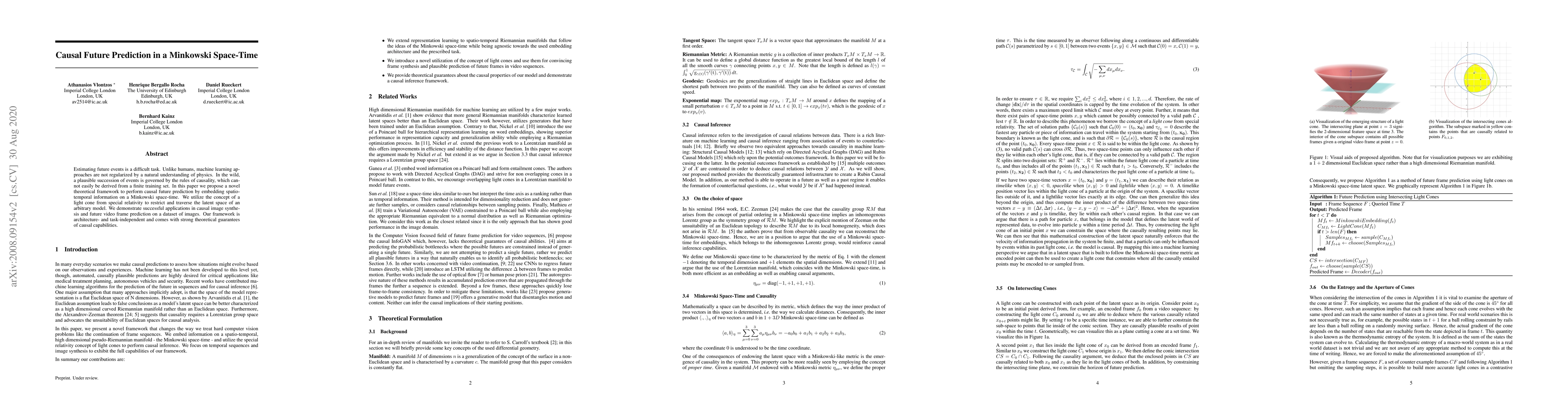 Estimating future events is a difficult task. Unlike humans, machine learning approaches are not regularized by a natural understanding of physics. In the wild, a plausible succession of events is governed by the rules of causality, which cannot easily be derived from a finite training set. In this paper we propose a novel theoretical framework to perform causal future prediction by embedding spatiotemporal information on a Minkowski space-time. We utilize the concept of a light cone from special relativity to restrict and traverse the latent space of an arbitrary model. We demonstrate successful applications in causal image synthesis and future video frame prediction on a dataset of images. Our framework is architecture- and task-independent and comes with strong theoretical guarantees of causal capabilities.