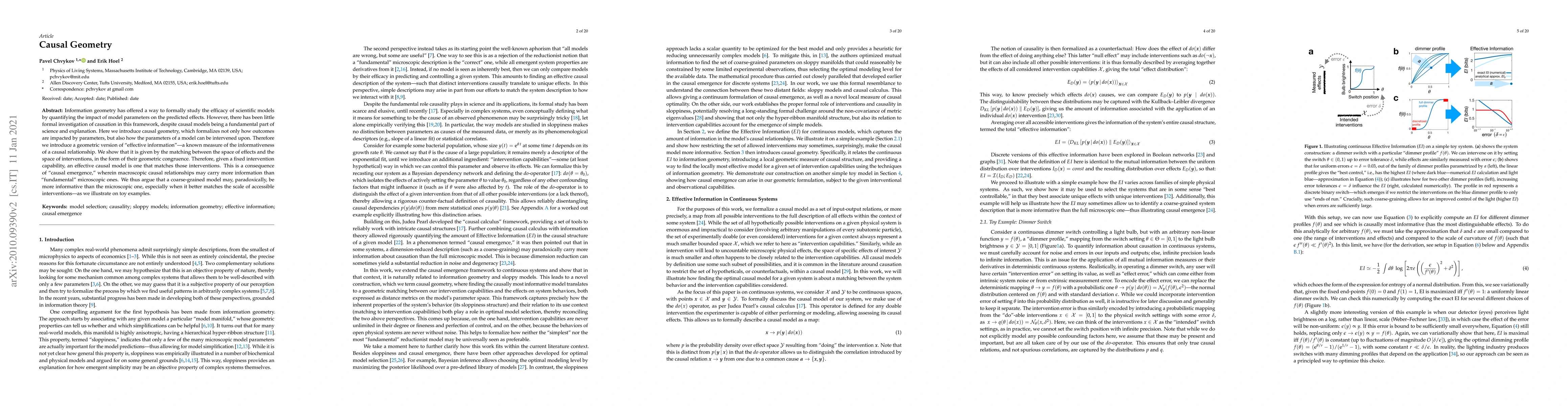 This paper introduces causal geometry, a framework that formalizes how model parameters impact outcomes and can be intervened upon, providing a new measure of effective information in causal relationships.