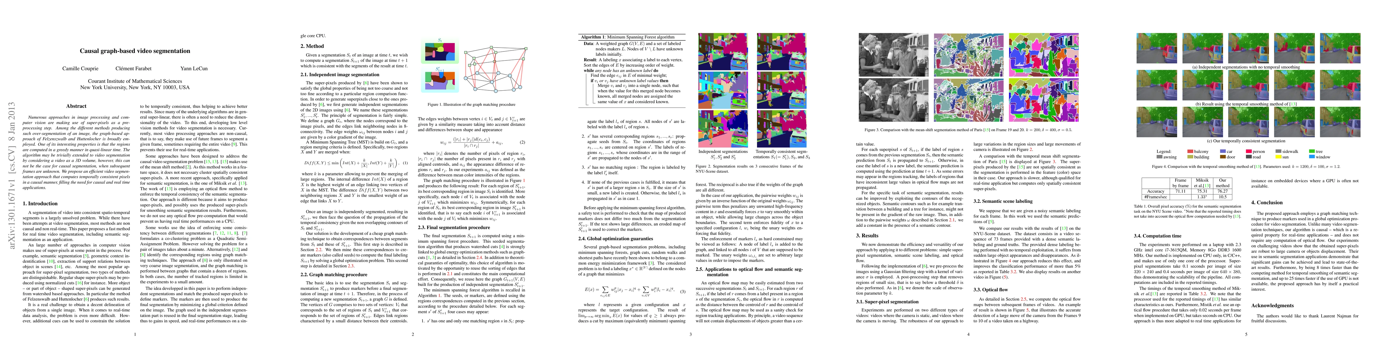 This paper proposes an efficient video segmentation method that computes temporally consistent pixels in a causal manner, addressing the need for real-time applications where subsequent frames are unknown. The approach extends the graph-based super-pixel segmentation algorithm to video, ensuring temporal consistency without requiring future frame information.
