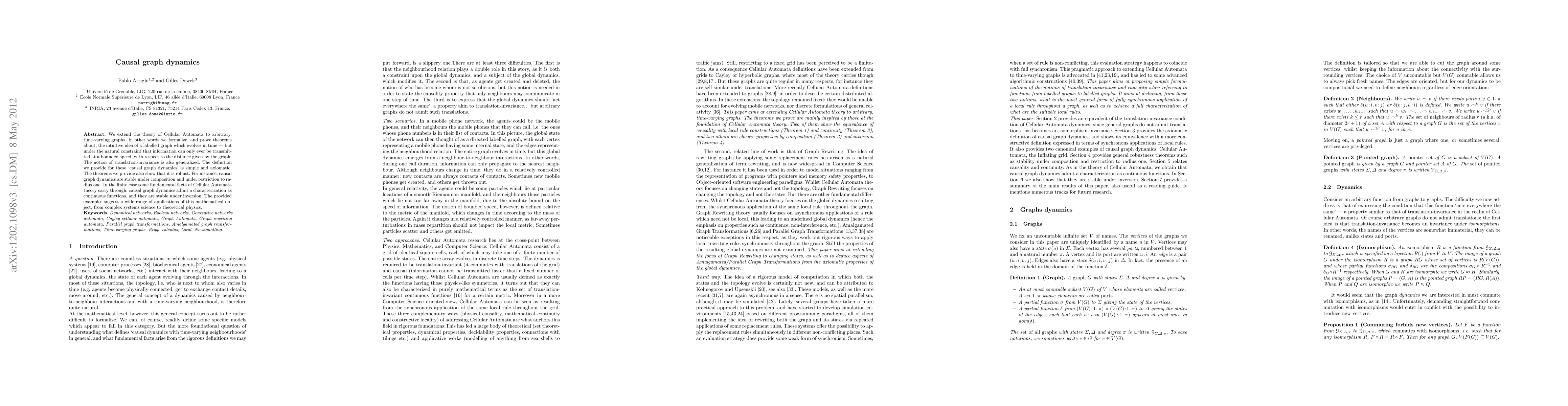 This paper extends Cellular Automata theory to time-varying graphs, formalizing "causal graph dynamics" where information propagates at bounded speeds. It proves theorems demonstrating the stability and robustness of these dynamics, with applications suggested in complex systems and theoretical physics.