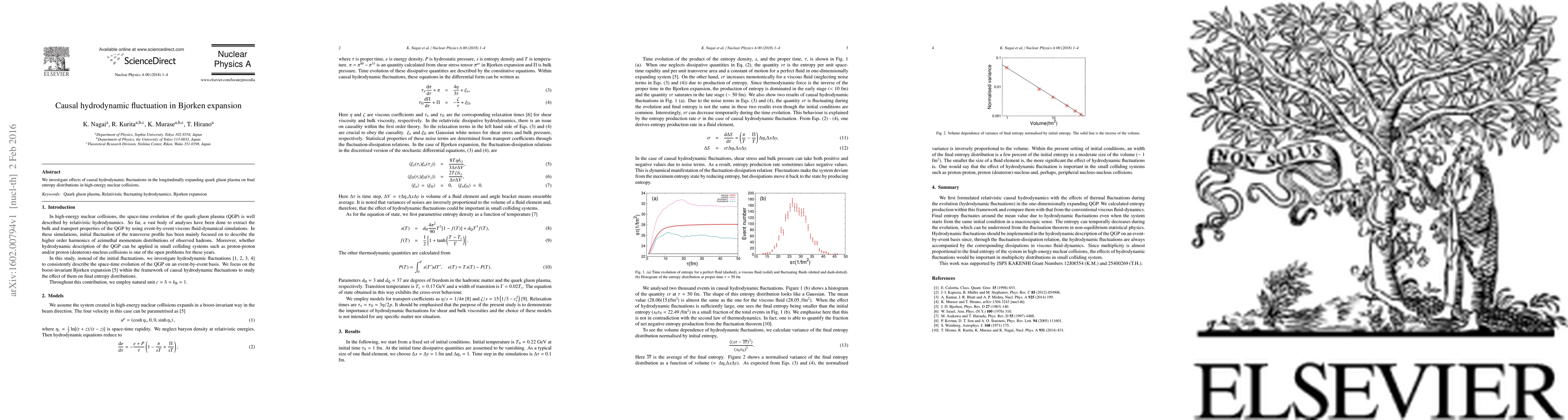 We investigate effects of causal hydrodynamic fluctuations in the longitudinally expanding quark gluon plasma on final entropy distributions in high-energy nuclear collisions.