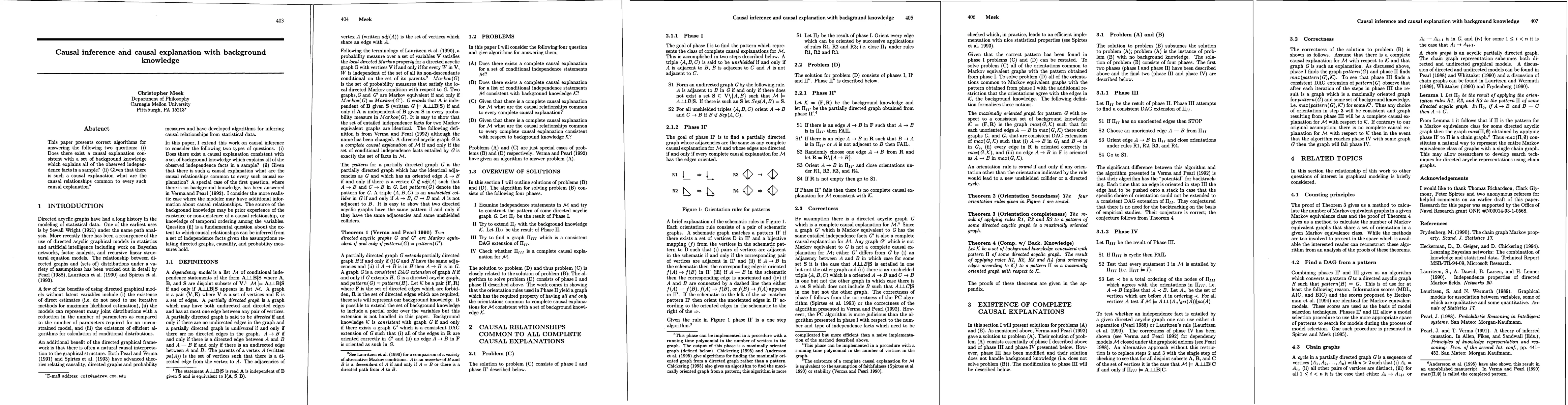 This paper develops algorithms to determine if a causal explanation consistent with background knowledge can account for observed independence facts, and identifies the common causal relationships in all such explanations.