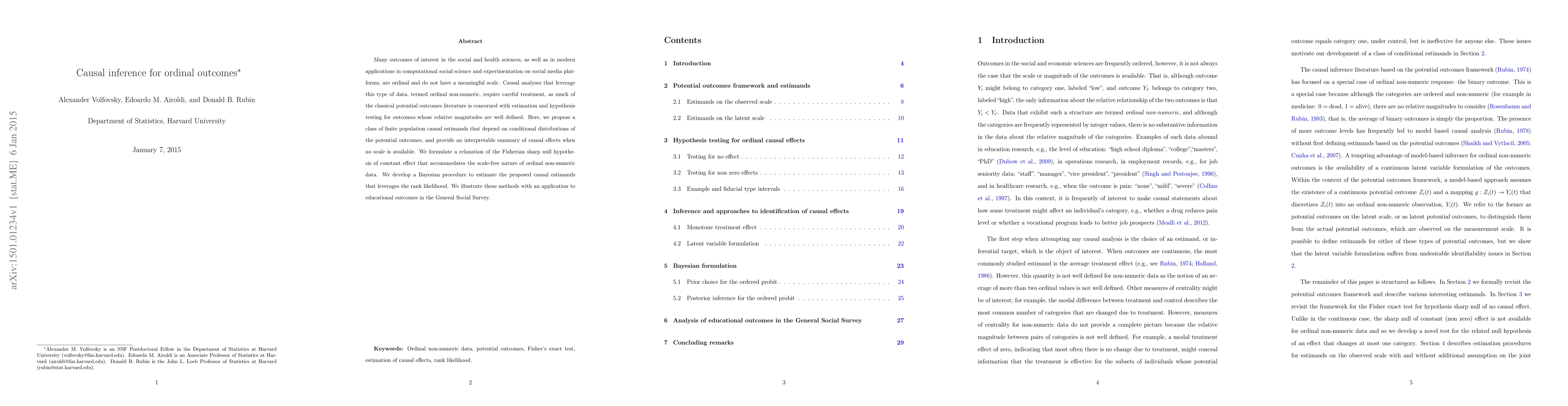 This paper proposes a new class of causal estimands for ordinal non-numeric outcomes, offering a Bayesian procedure to estimate these effects using rank likelihood. It introduces a flexible null hypothesis that accommodates the scale-free nature of ordinal data, illustrated through an application to educational outcomes.