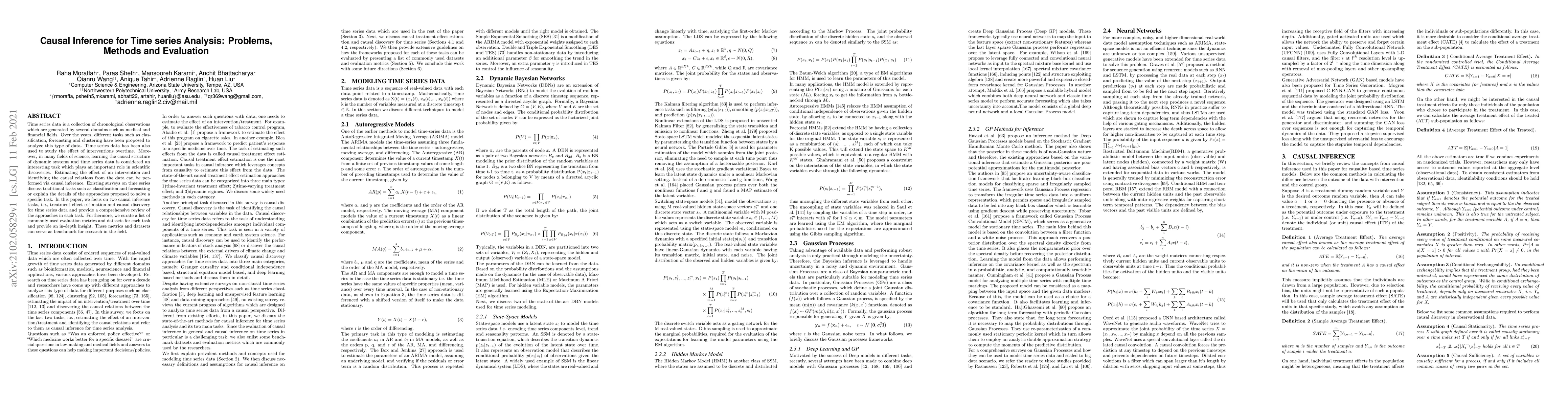 This paper reviews methods for causal inference in time series analysis, focusing on treatment effect estimation and causal discovery. It provides a comprehensive overview of existing approaches and evaluates them using standard metrics and datasets.