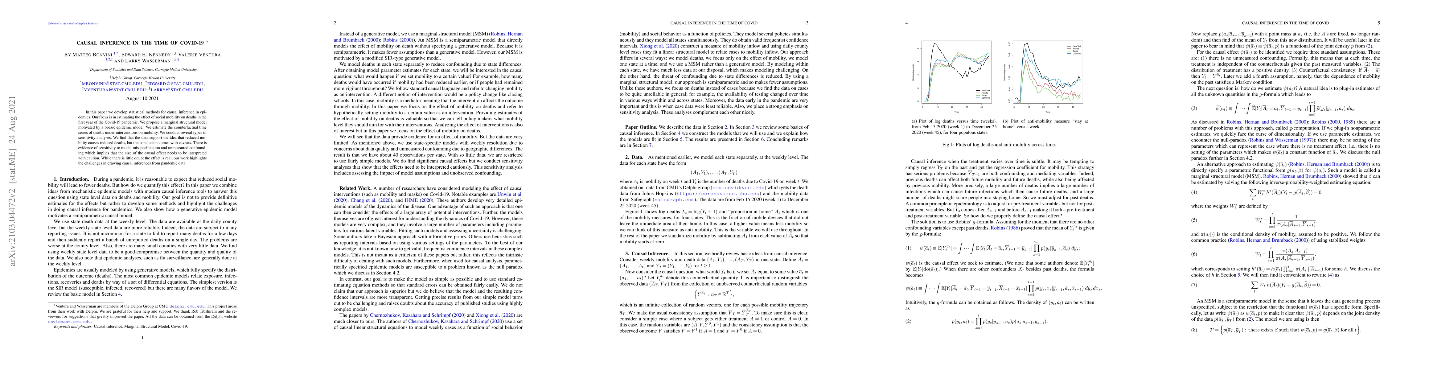 Researchers developed statistical methods to estimate the effect of social mobility on Covid-19 deaths, finding that reduced mobility may lead to reduced deaths, but with caveats due to model misspecification and confounding factors.