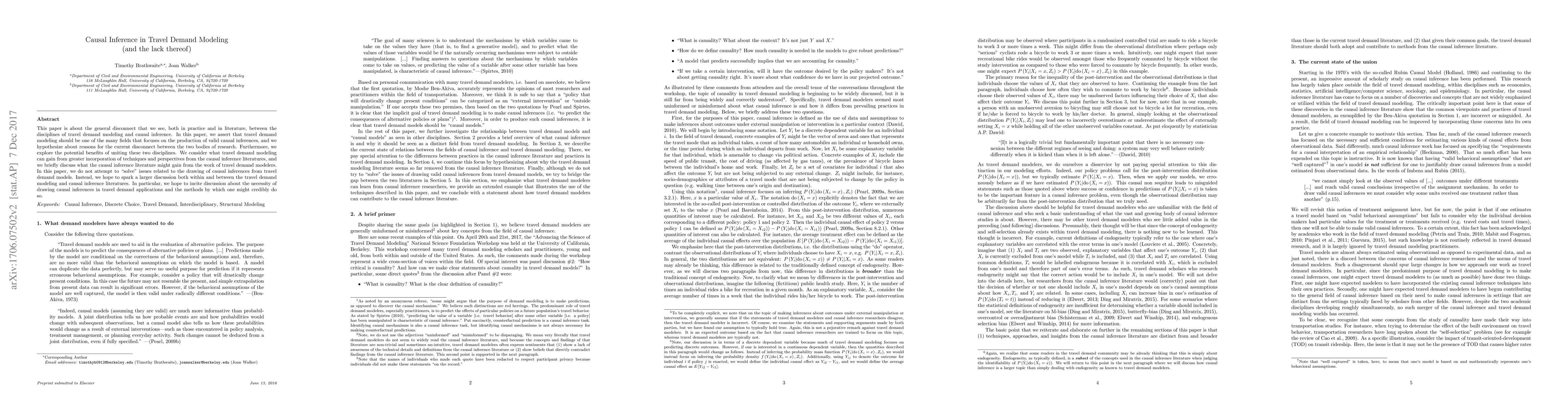 Travel demand modeling and causal inference have a disconnect between them, but uniting these disciplines could benefit both fields, particularly in understanding the necessity of drawing causal inferences for travel applications.