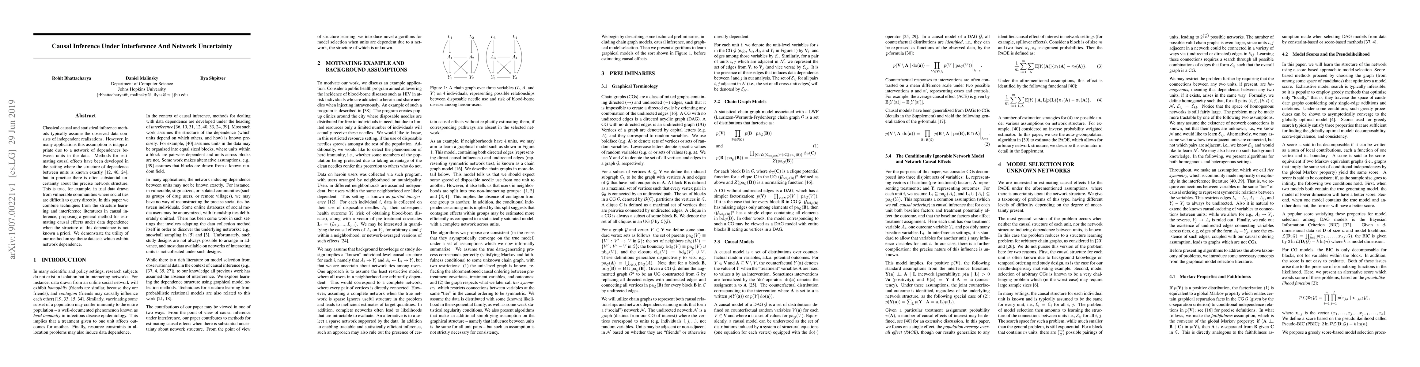 This paper proposes a novel method for estimating causal effects in scenarios where data units are interdependent and the network structure is uncertain. It combines techniques from structure learning and interference to address these challenges, demonstrating its effectiveness on synthetic datasets.