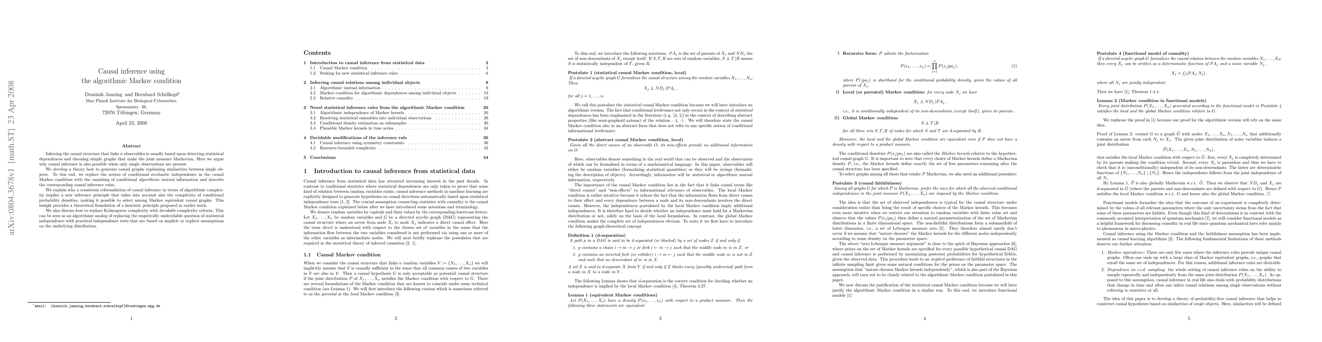 This paper proposes a novel approach to causal inference using the algorithmic Markov condition, arguing that causal graphs can be inferred from single observations by replacing conditional stochastic independence with the vanishing of conditional algorithmic mutual information. It introduces a new inference principle that considers the complexity of conditional probability densities, providing a theoretical foundation for selecting among Markov equivalent causal graphs.