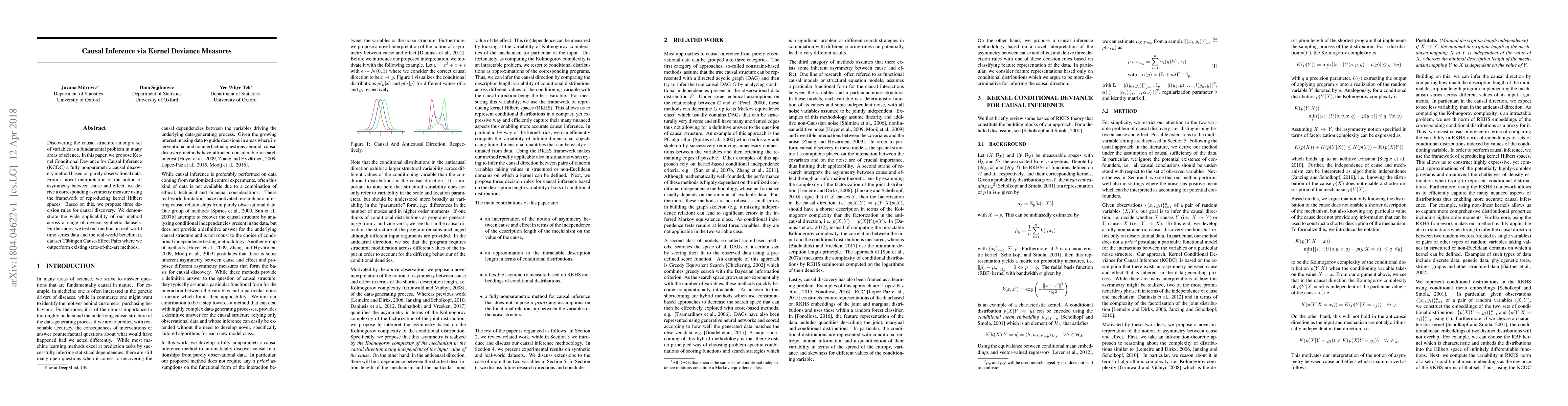 This paper introduces Kernel Conditional Deviance for Causal Inference (KCDC), a nonparametric method for causal discovery using observational data. It leverages asymmetry measures derived from reproducing kernel Hilbert spaces and outperforms existing methods on both synthetic and real-world datasets.