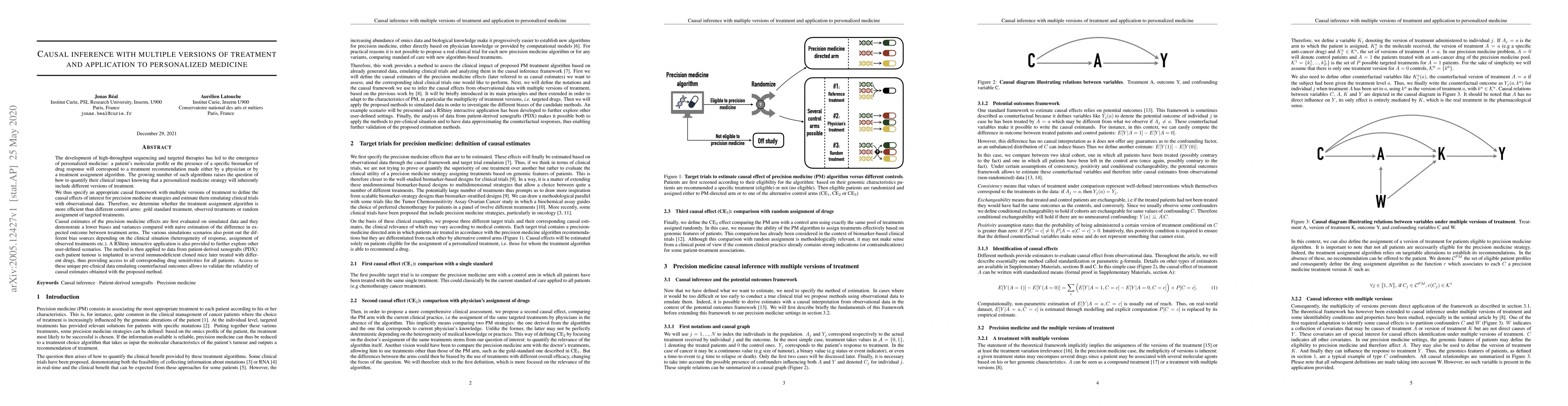 This paper develops a causal inference framework to evaluate the effectiveness of personalized medicine strategies using multiple treatment versions. It estimates causal effects using observational data and compares algorithms against control arms, demonstrating lower biases and variances in simulations. The method is validated using pre-clinical data from patient-derived xenografts.